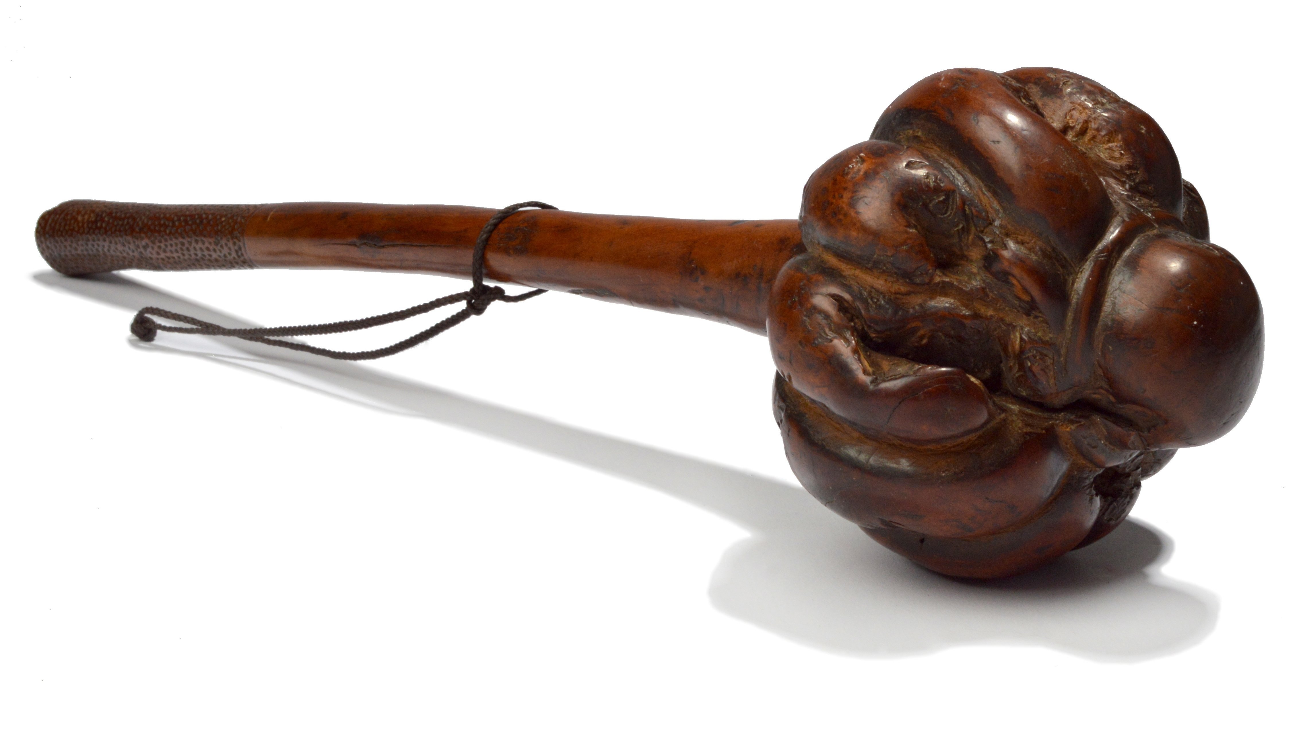 with a lobed head and a carved zig-zag grip, the butt with a circular depression,