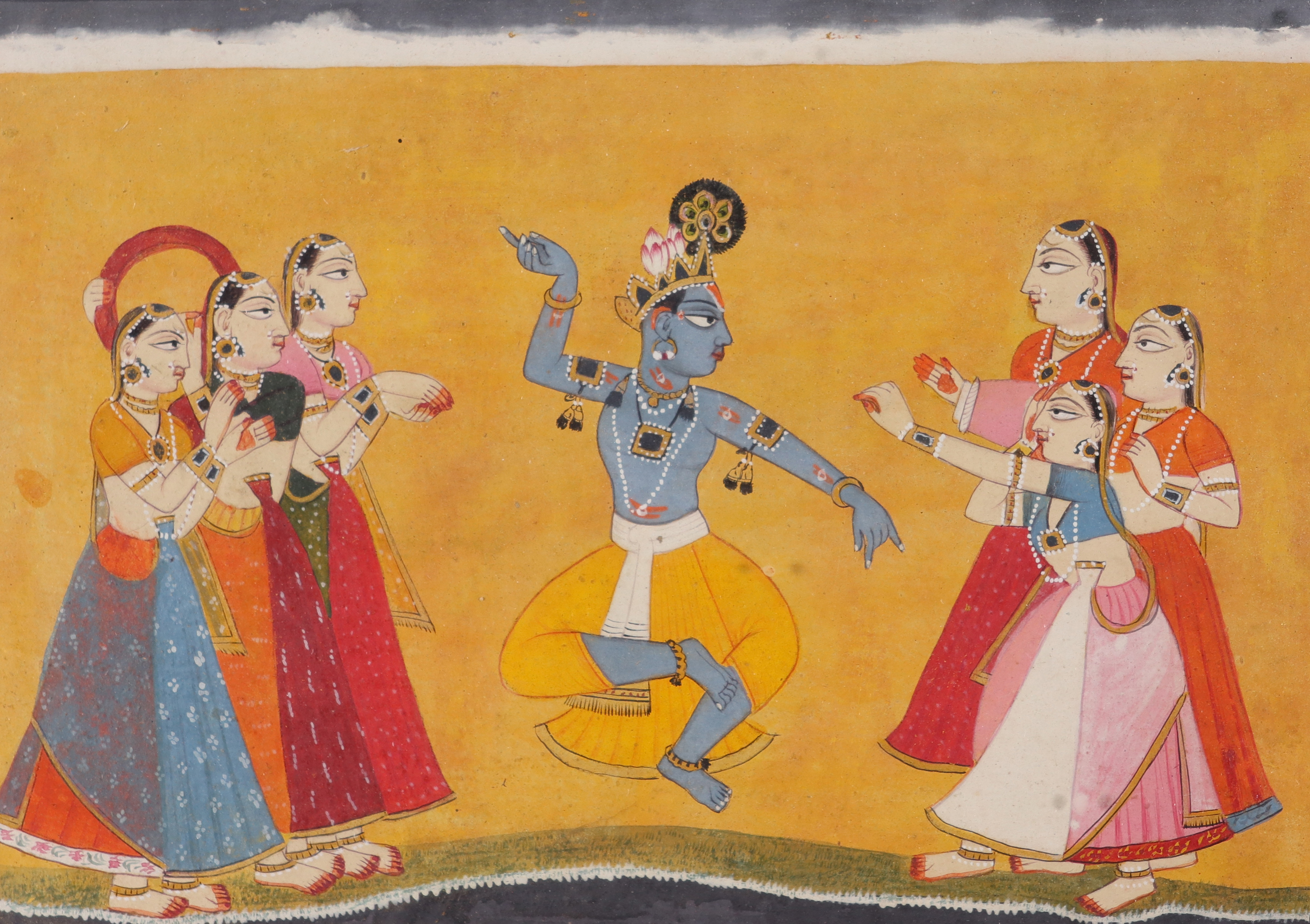 With a further watercolour Indian Mankot School of Krishna dancing with the Gopis 15 x 21cm; 6 x 8¼in (2)