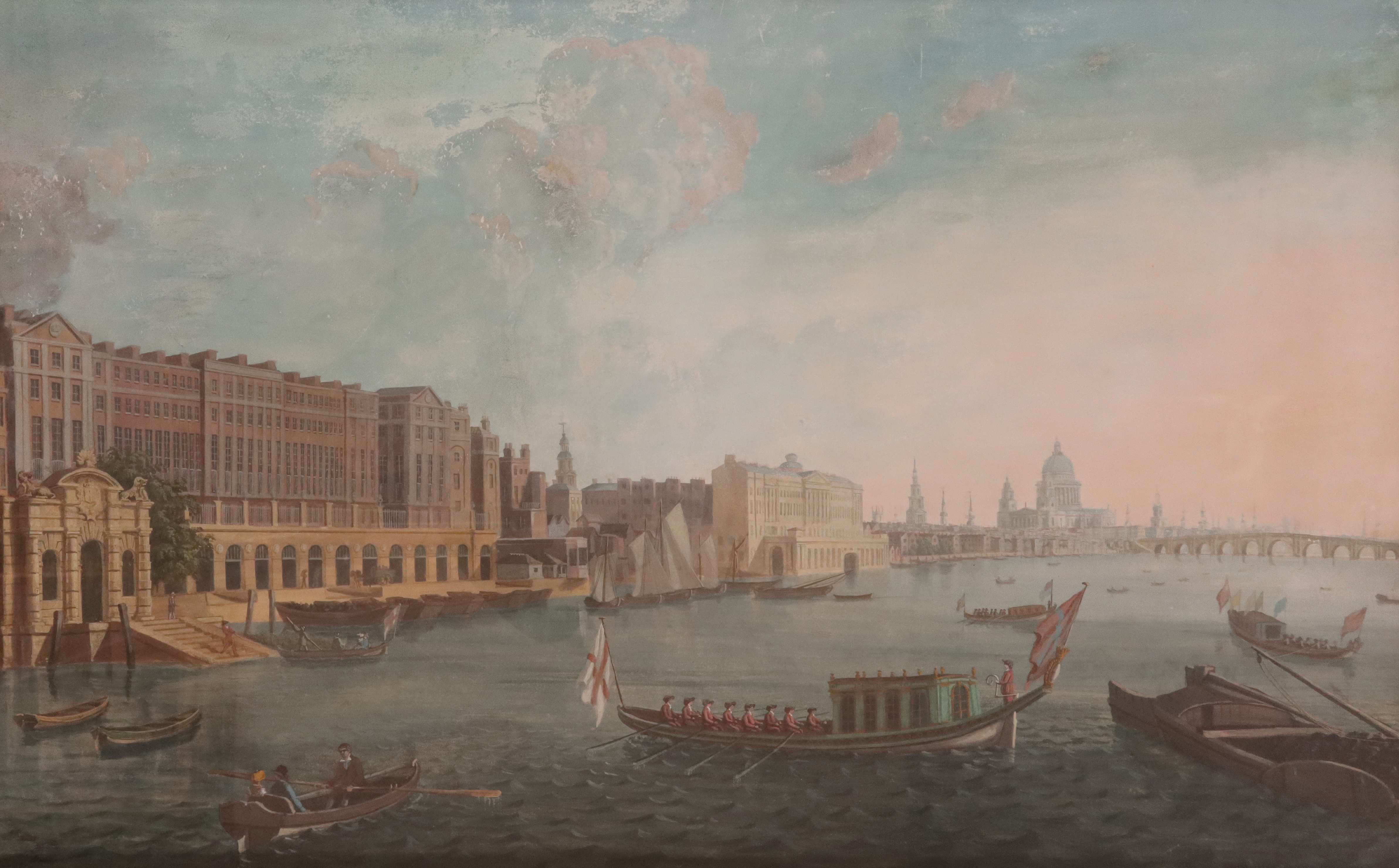 English School 18/19th Century A view of the River Thames with St. Paul's Cathedral Gouache 50 x...