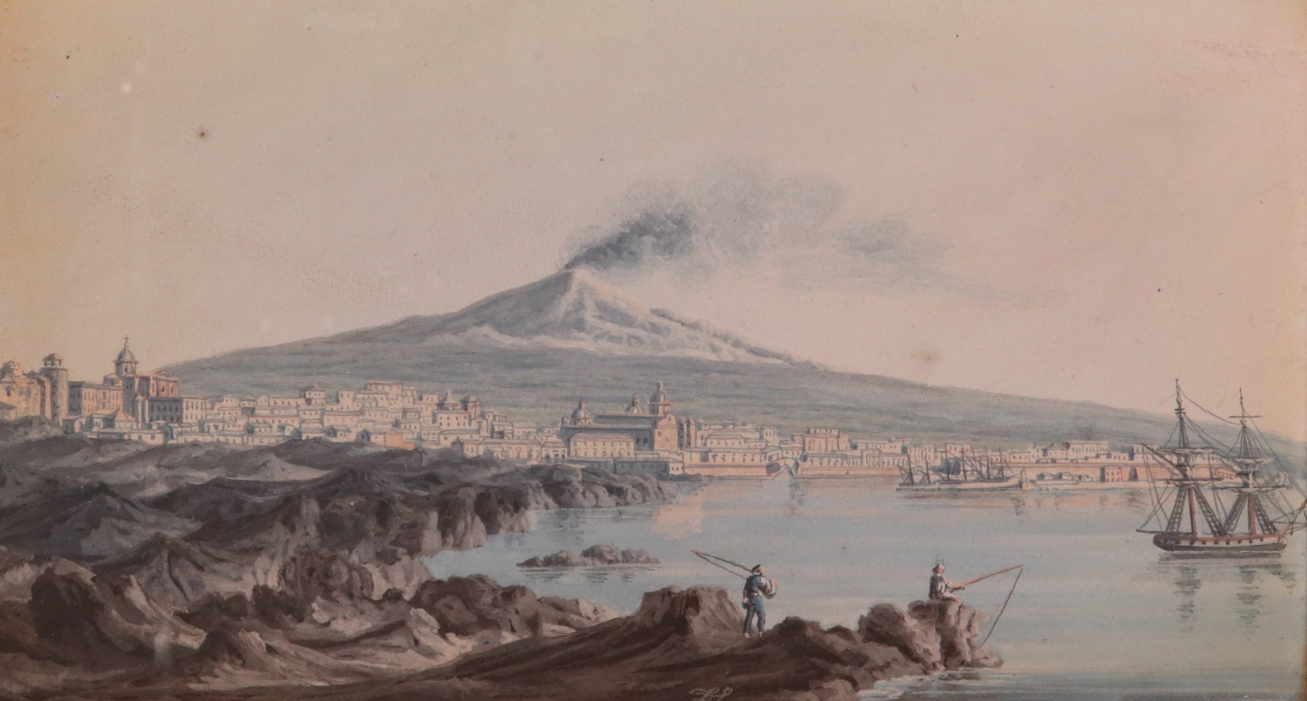 The Temple at Segesta with the Agora in the distance; The City and Port of Catania with Mount Etna beyond; Palermo from the Sea; Palermo and Mount Pelegrino from the coast; Palermo with Mount Pelegrino beyond, the river Oreto in the foreground; Palermo from Mount Pelegrino with Bagheria beyond; Valle dei Templi at Agrigento, with Temple of Concordia and Temple of Ercole from Temple Giunone; Figures with an Atlas in foreground and town of Villaseta in the far left distance; Palermo and Mount Pelegrino from Bagheria