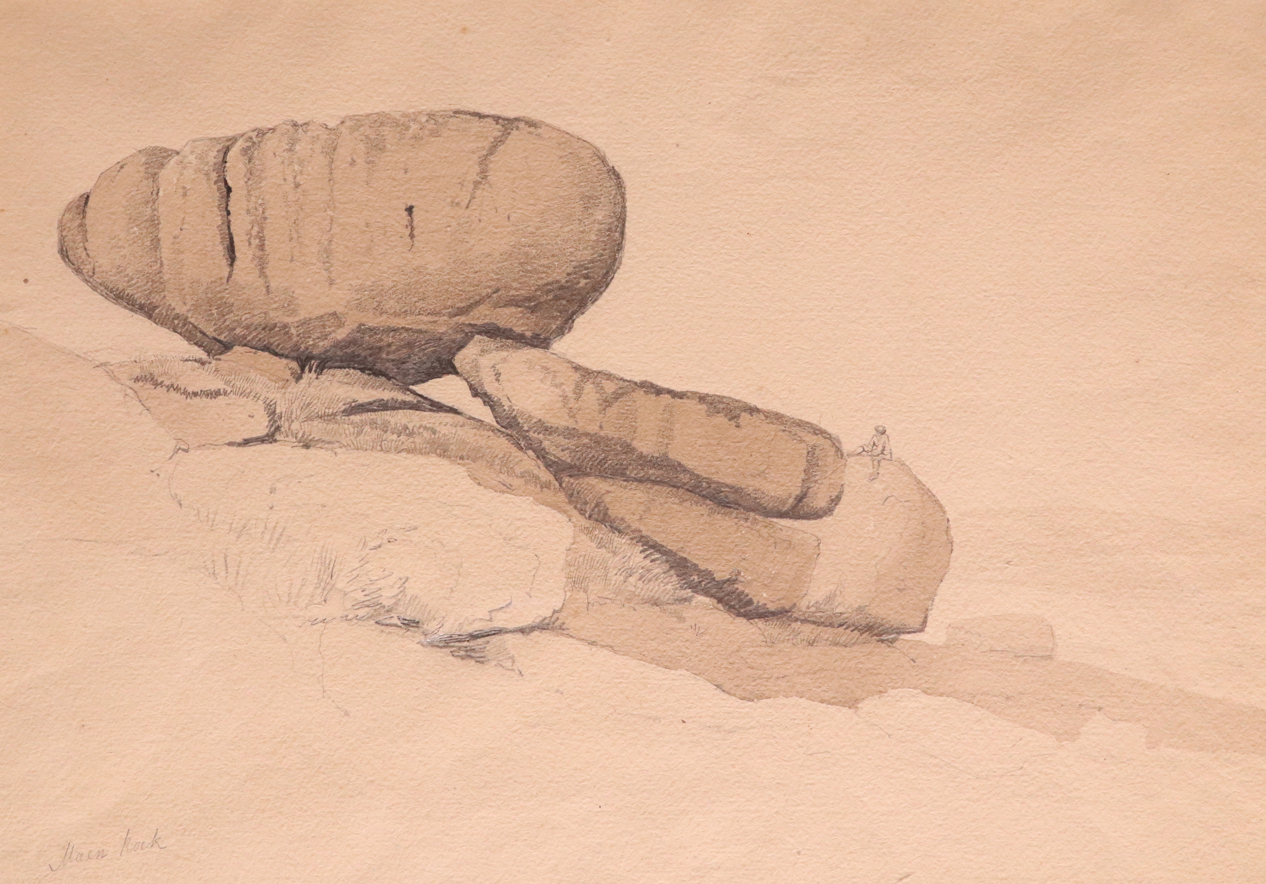 Pencil and wash on buff paper