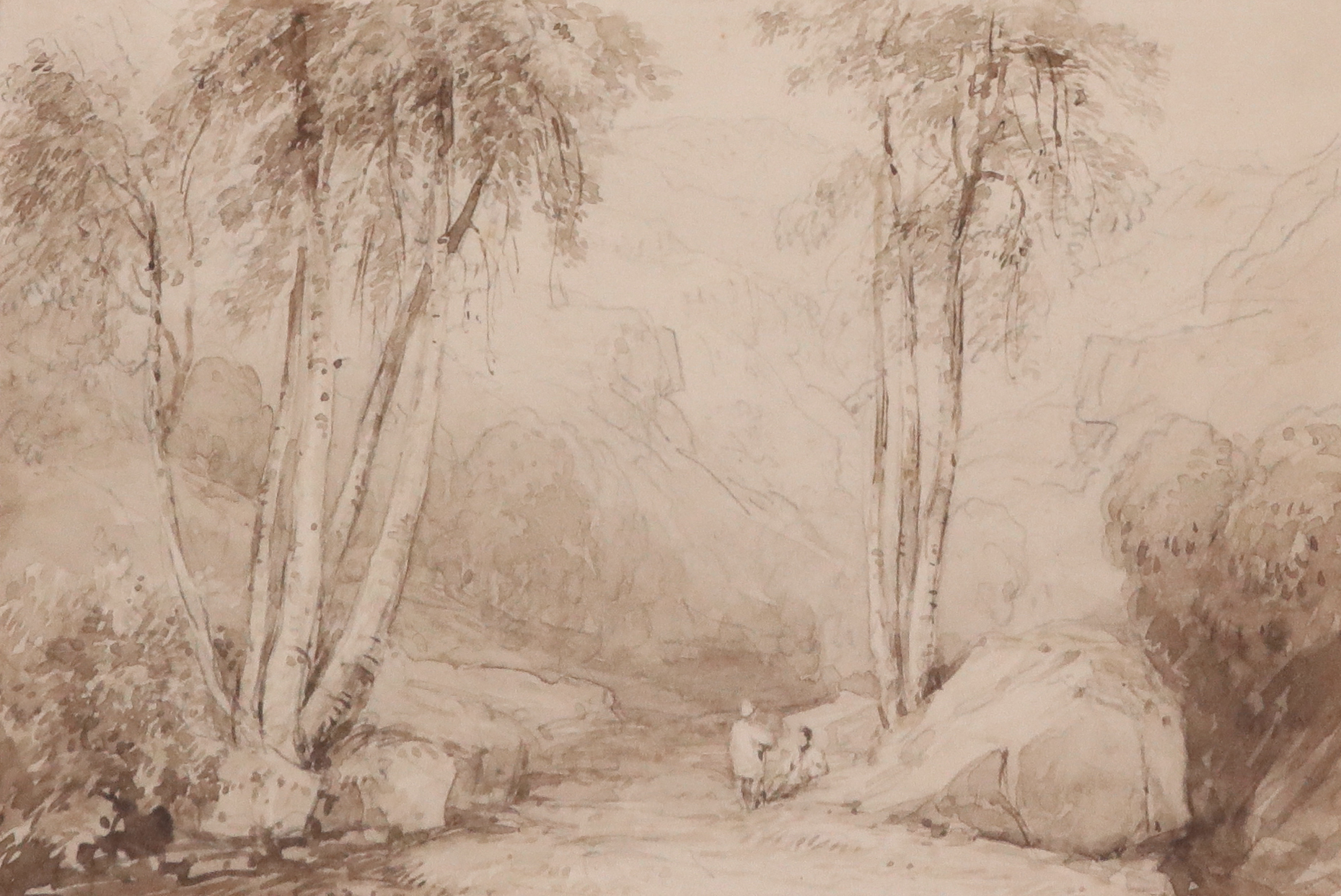 David Cox Snr. O.W.S. (1783-1859) Figures in a landscape near Penmaenmawr Pencil and sepia wash...