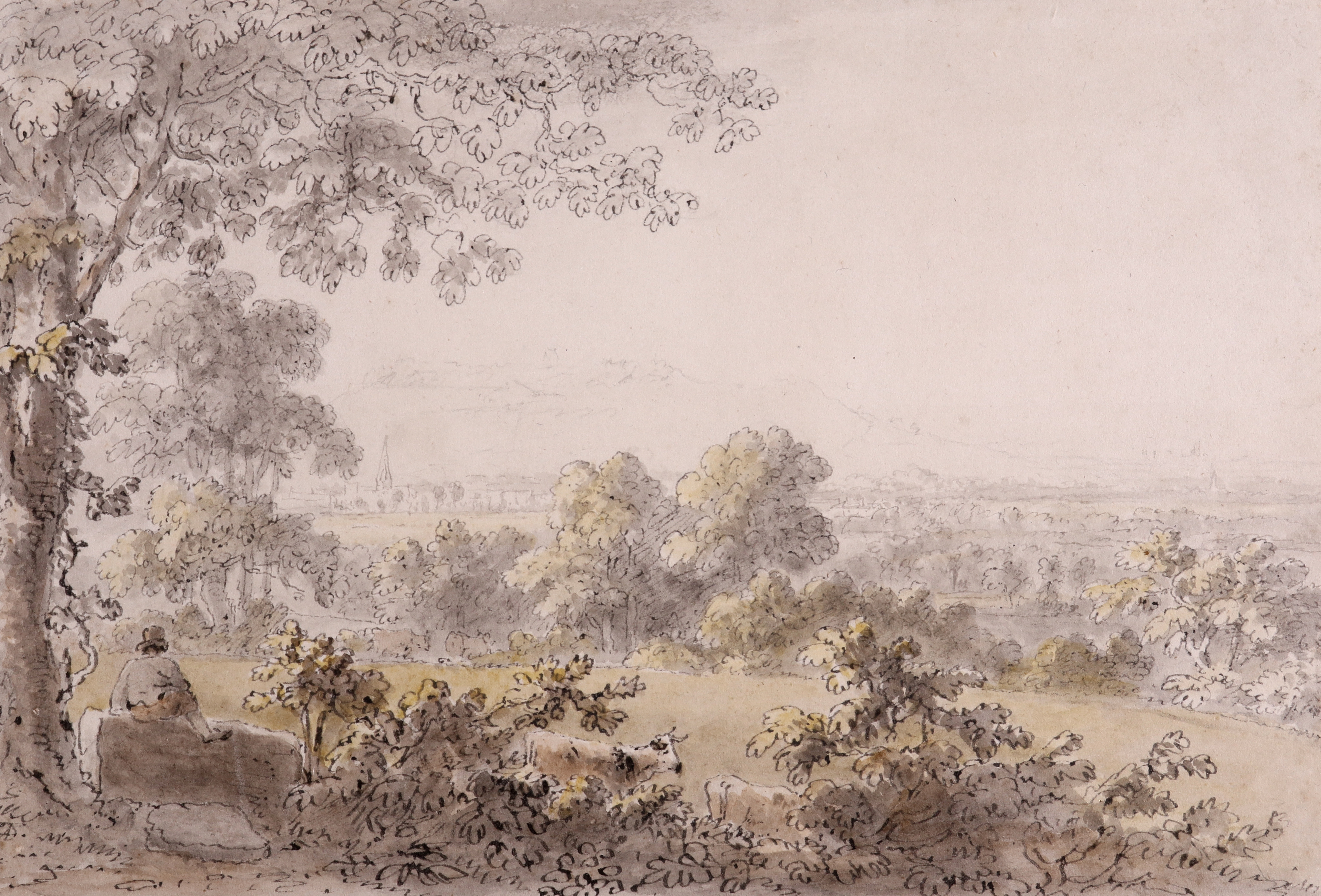 Landscape with a seated figure and cattle
