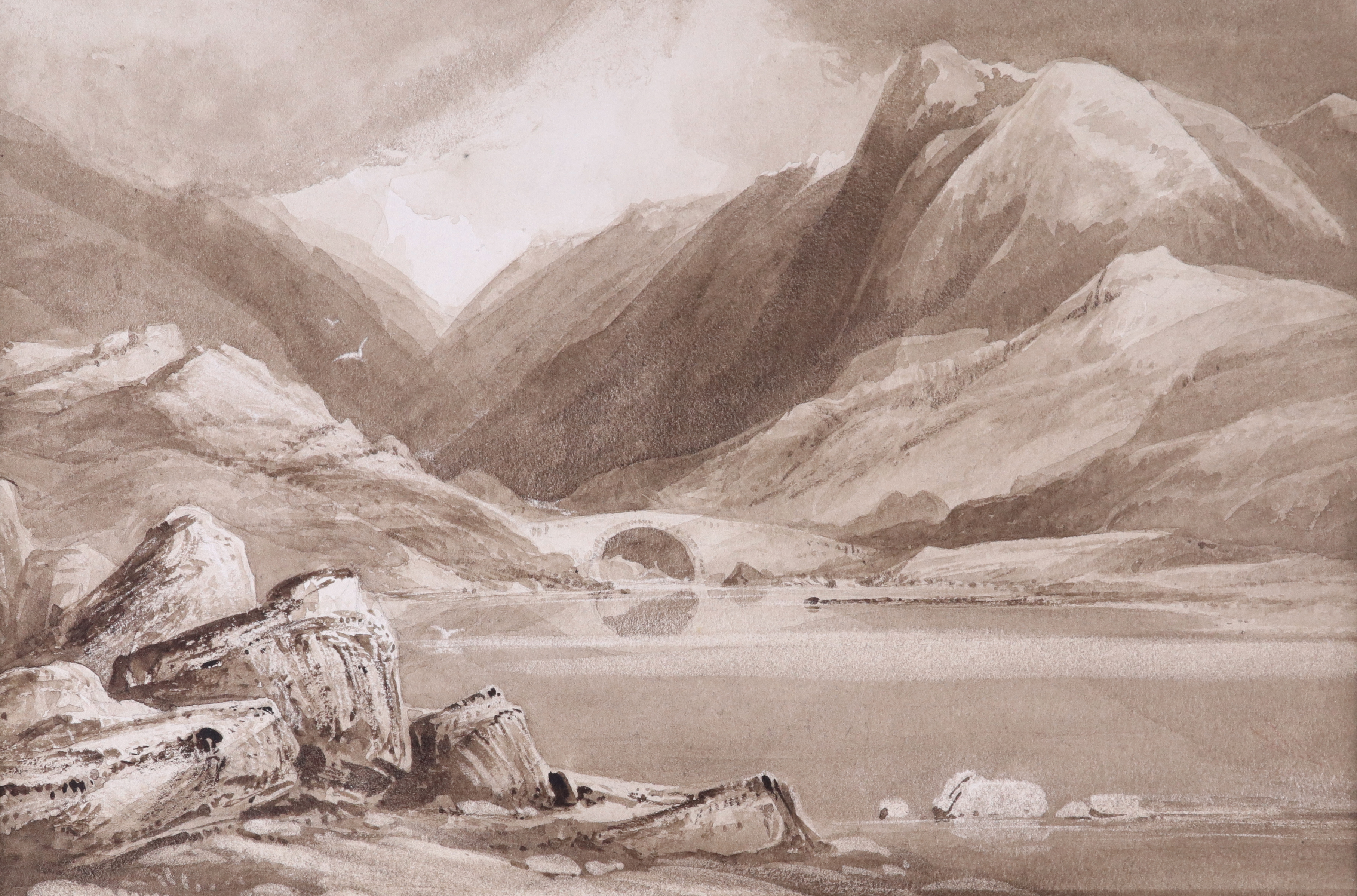 Brown washes heightened with stopping out, mounted, unframed