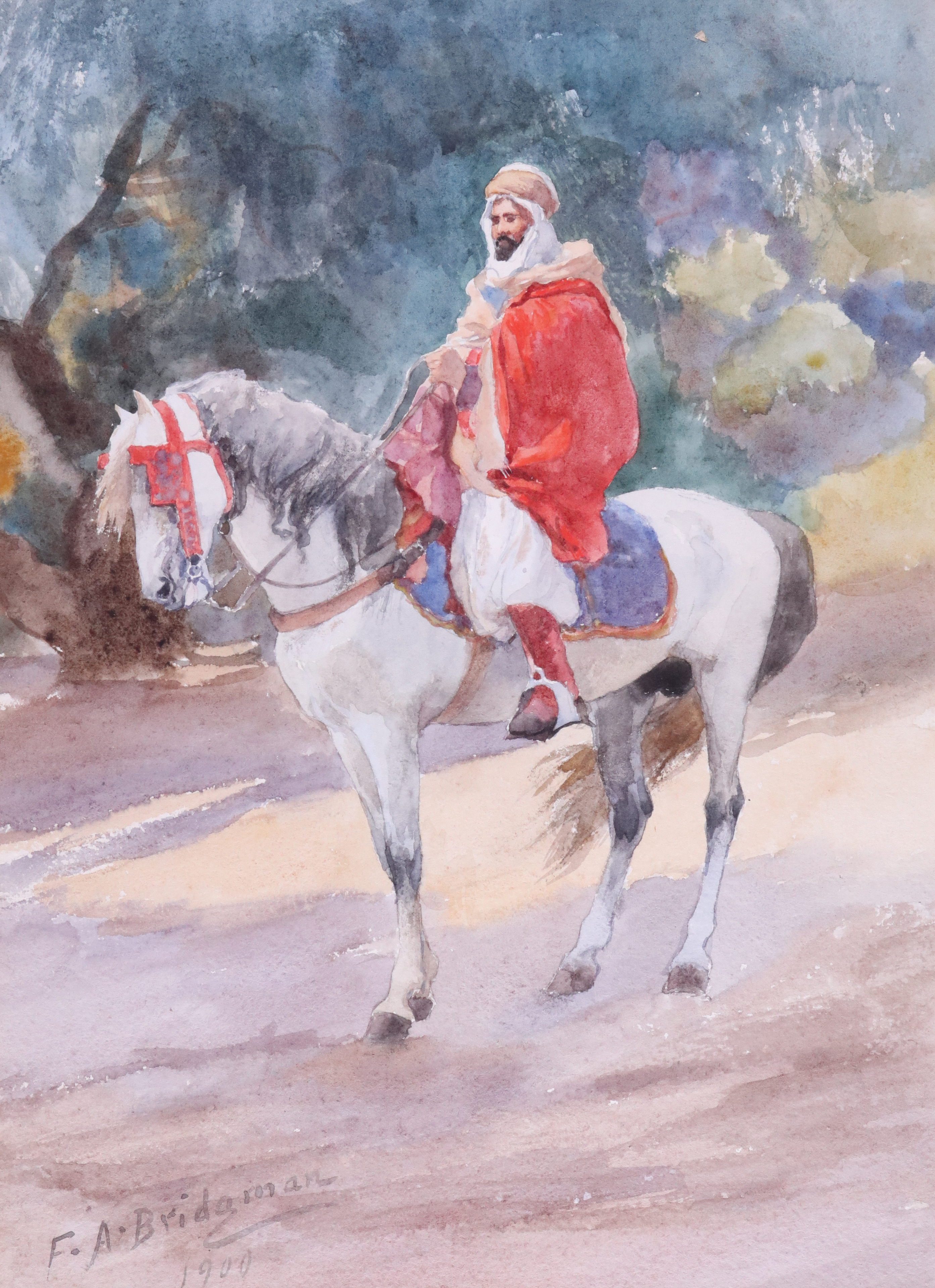 Frederick Arthur Bridgman (1847-1928) Algerian Spahi on horseback Signed and dated 1900...
