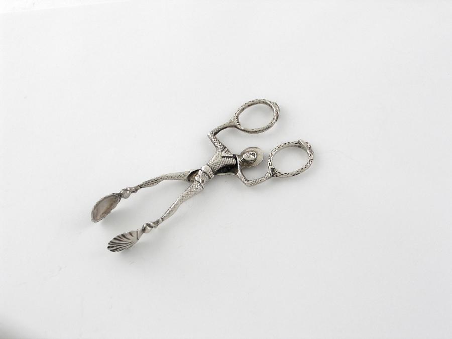A pair of Harlequin sugar nips, by Nathan & Hayes, Chester 1900.