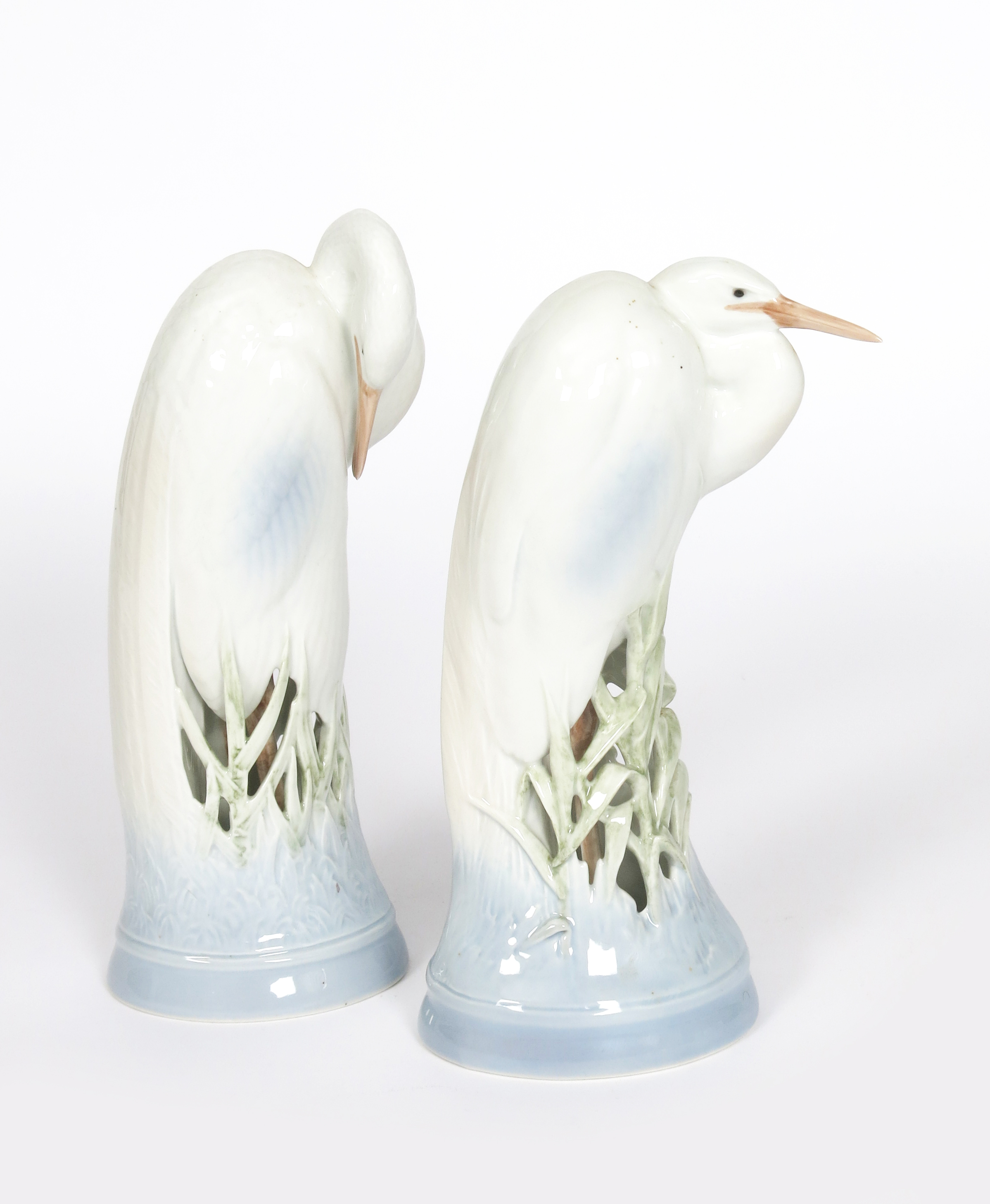 A pair of Royal Copenhagen Egret figures designed by Theodor Madsen