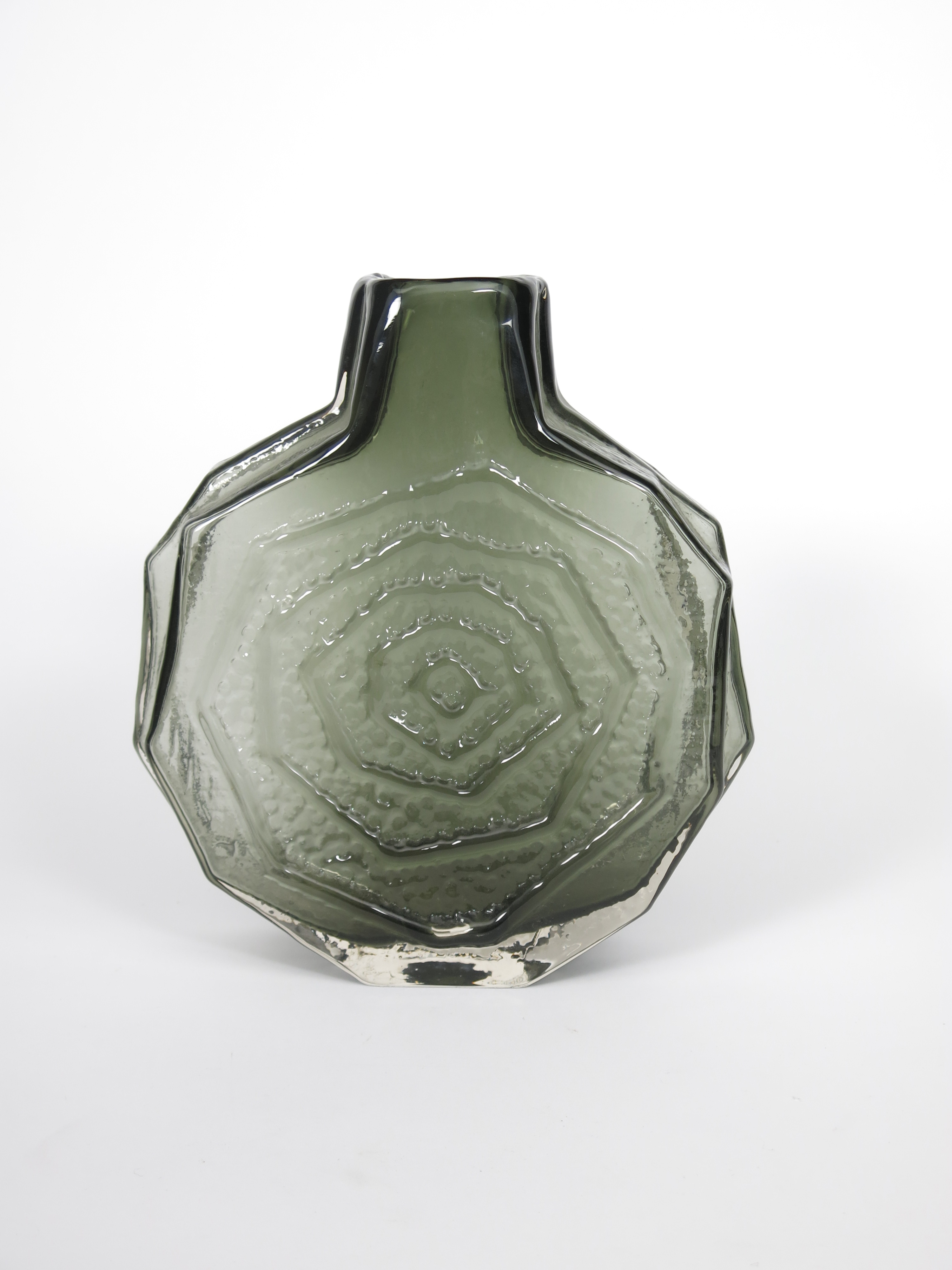 A Whitefriars Willow glass Banjo vase designed by Geoffrey Baxter, moulded form, unsigned, 31.5cm. high