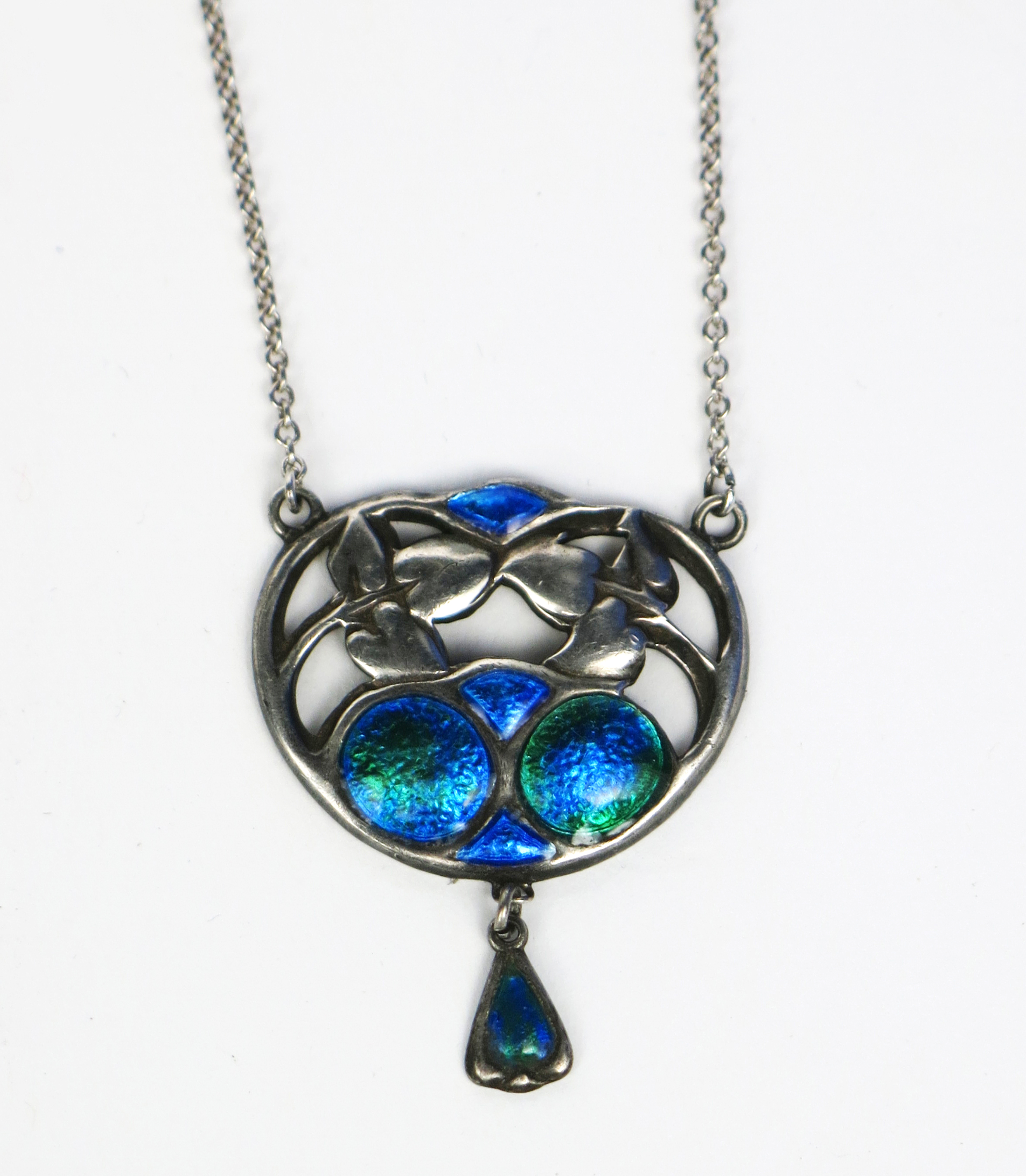 An Art Nouveau Charles Horner silver and enamel pendant necklace