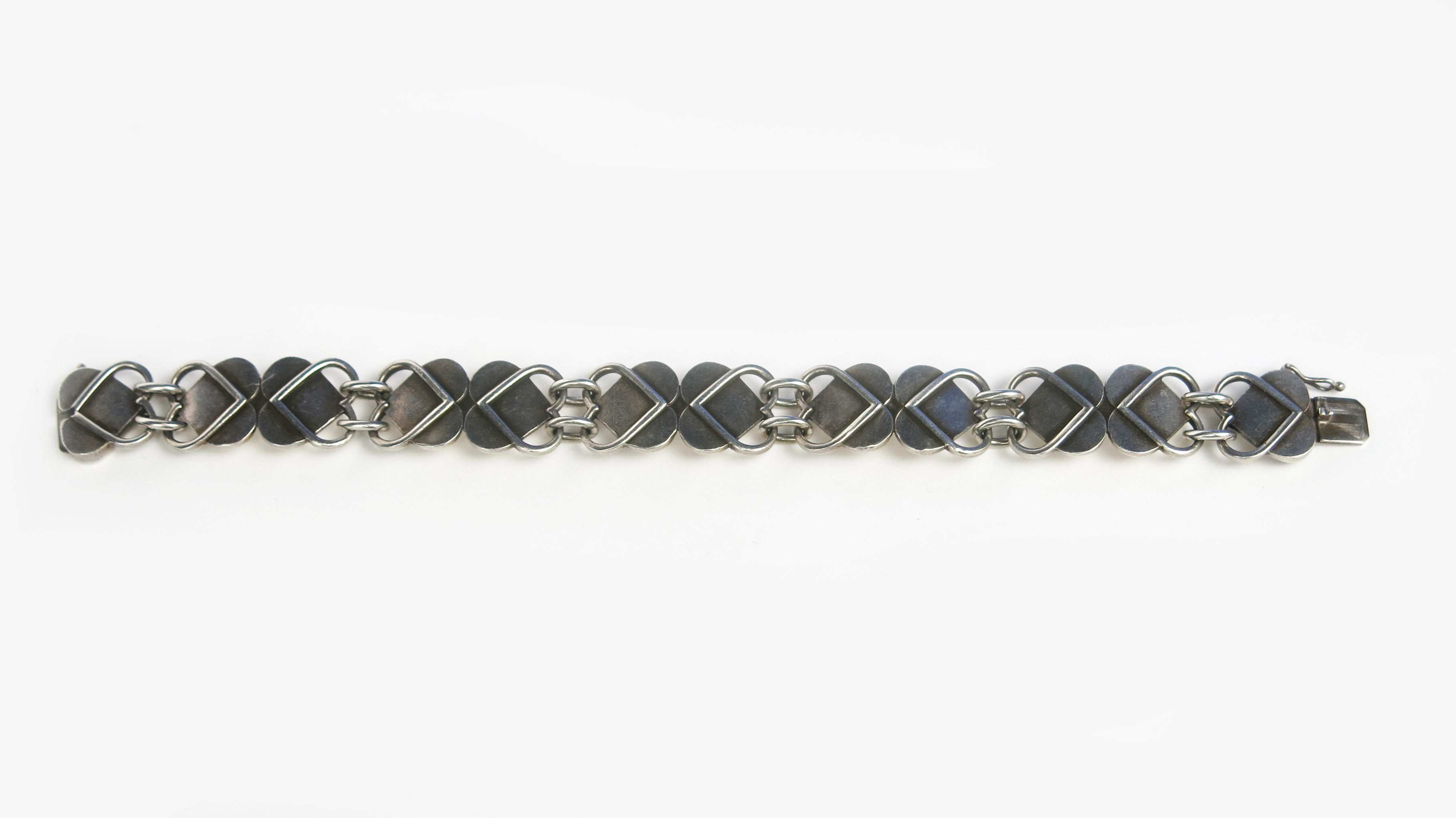 A Georg Jensen silver bracelet, model no.88, each link modelled as back to back hearts, with box clasp, stamped marks, 19.5cm. long