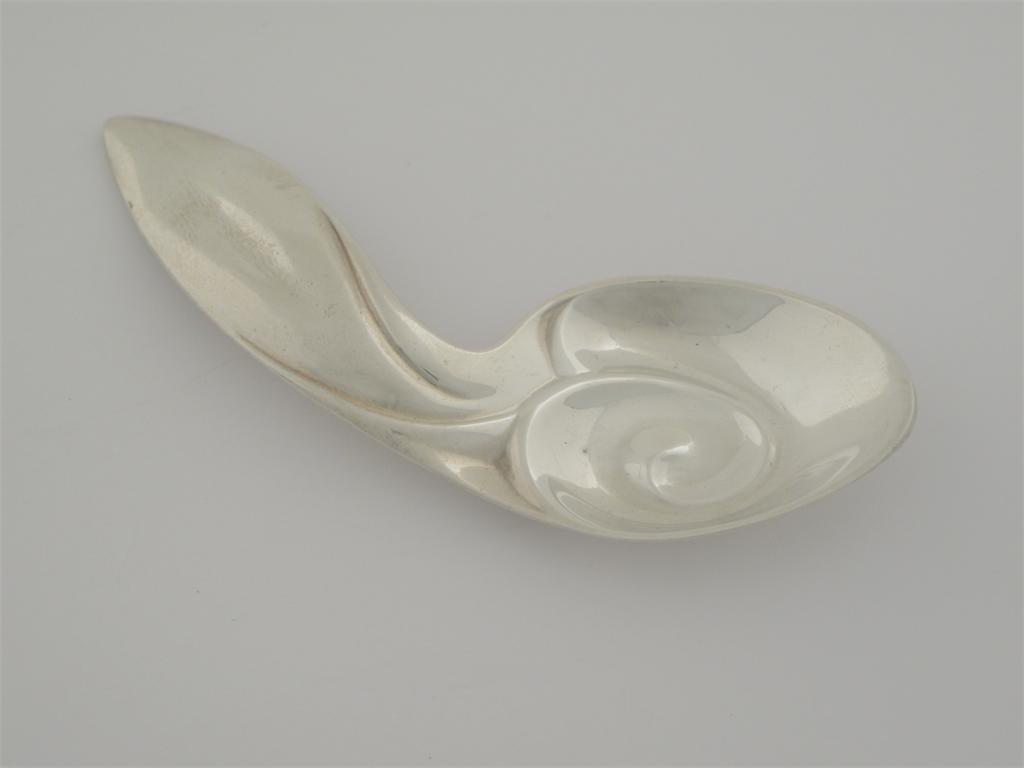 A 20th century American caddy spoon, asymmetrical with a swirl in the bowl, by Tiffany & Co.