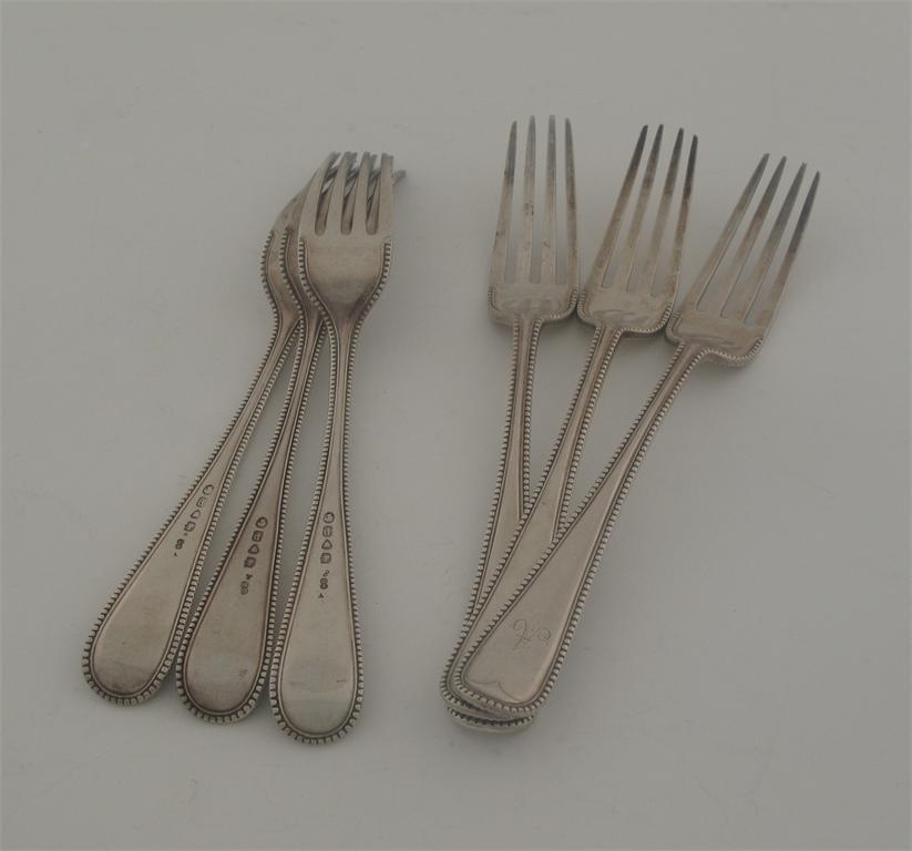 A set of six Victorian bead pattern tableforks, initialled 'A', by George Adams, London 1870, 18oz. (6)