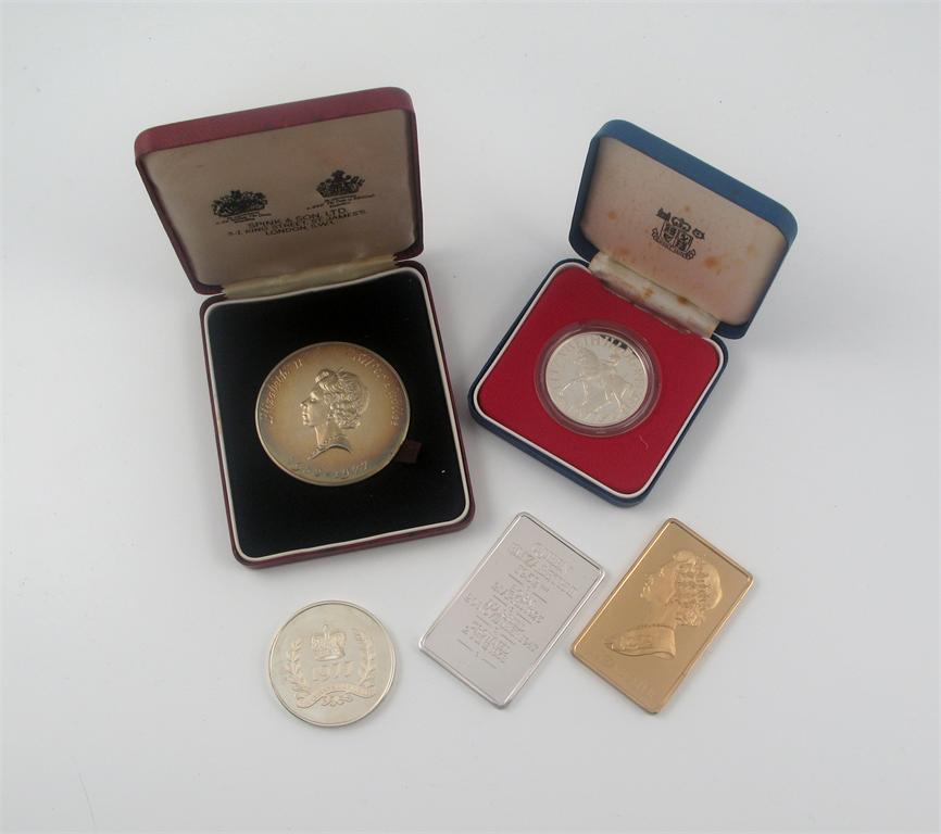 Elizabeth II, The Silver Jubilee, 1977, a collection of the main issues of commemorative medals struck for the event (26), by the Royal Mint, Leslie Durbin for Spink, and others, including £5 stamp replica, Proof Crown and small 9ct gold medal, several in original cases, mostly brilliant surface. About as issued. (26)