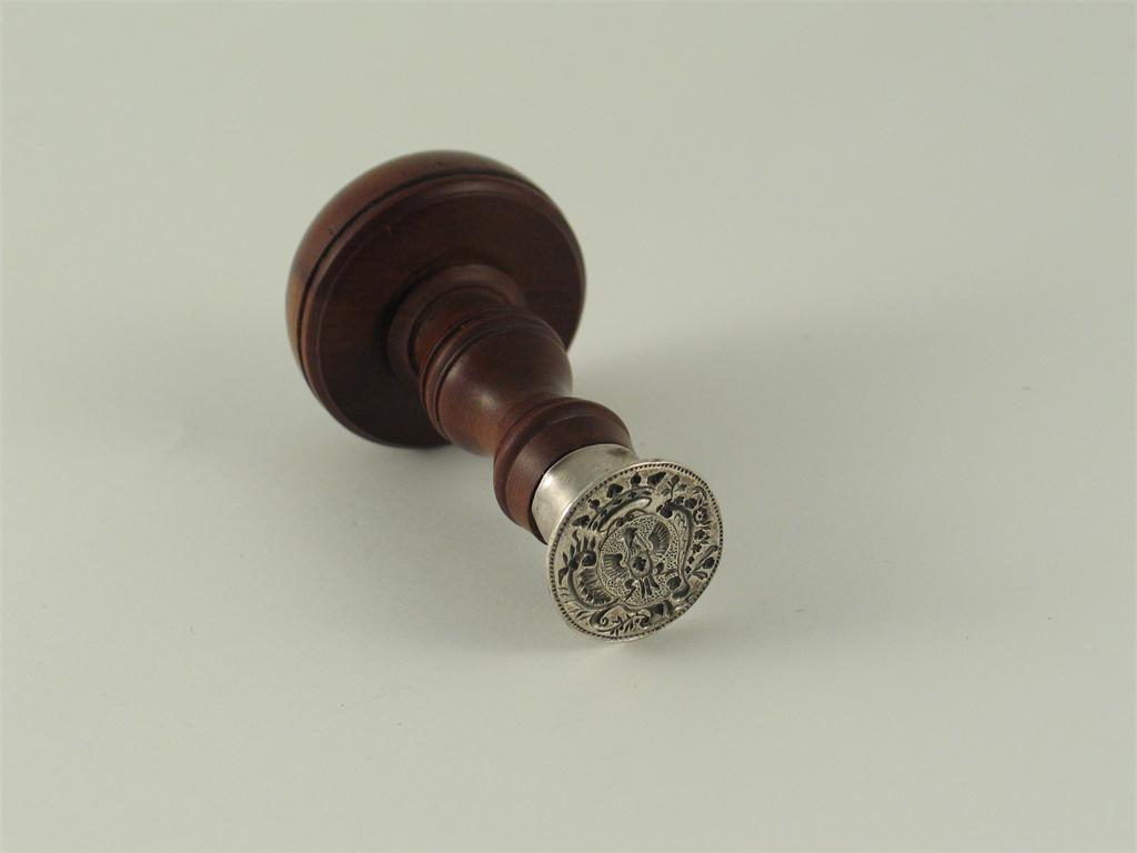 A mounted fruitwood desk seal