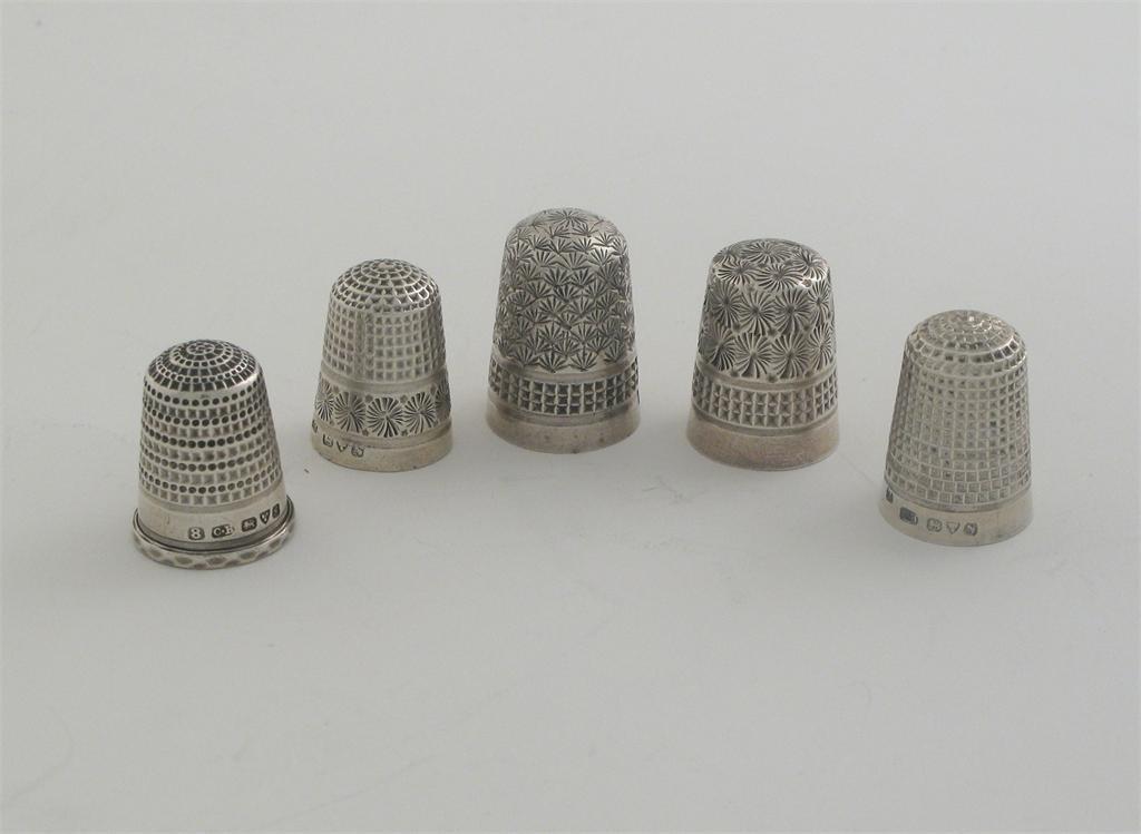 Five various hallmarked thimbles