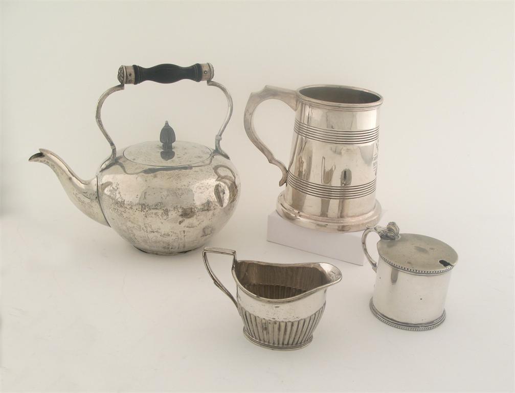 Plated ware:- a pair of entree dishes and covers, a hot water jug, a chamberstick, various condiments, a small turnover dish, two dish covers, a goblet, two teapots, two toast racks, a pair of candlesticks, a coffee pot, a mug, a hot water jug, a kettle, a biscuit box, three salvers and a cast model of a polar bear.