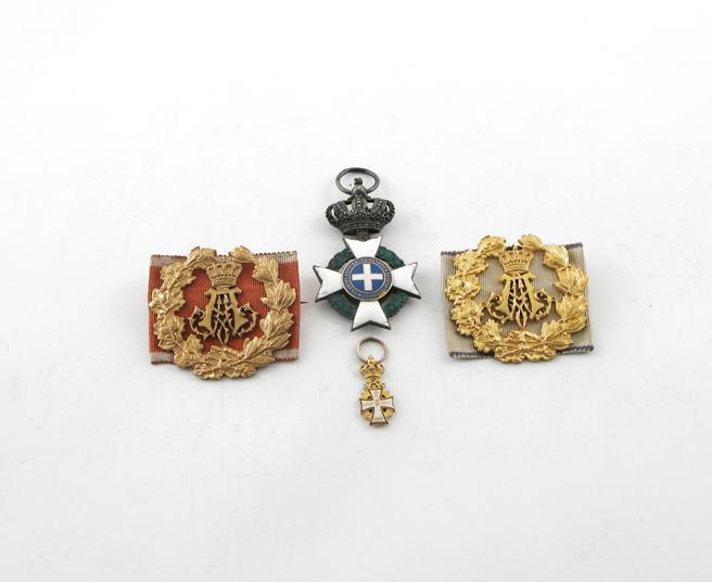 Foreign Orders and Badges, Greece, The Order of the Redeemer, Knight's Badge, 2nd type, some damage to enamel, very fine; Denmark, Christian IX (1863-1906), Order of the Dannebrog, gold and enamel miniature, extremely fine; Germany, Bavaria, Prince Alphonse, Erinnerungszeichen (2), Gilt metal, by M. Heinloth, extremely fine. (4)