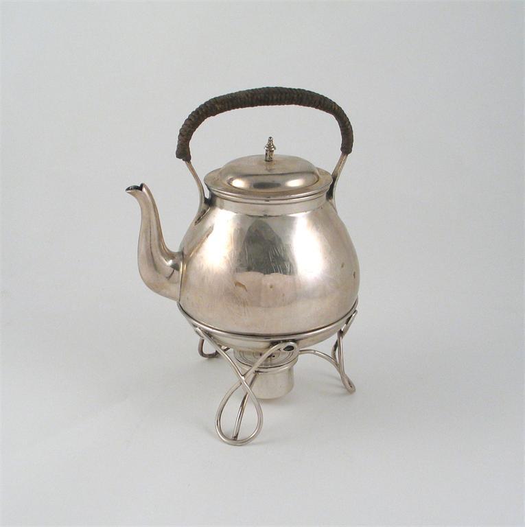 An Edwardian kettle on a late Victorian stand, with burner, two maker's, London 1899/1903, 8.5in (21.5cm) high, 17oz.