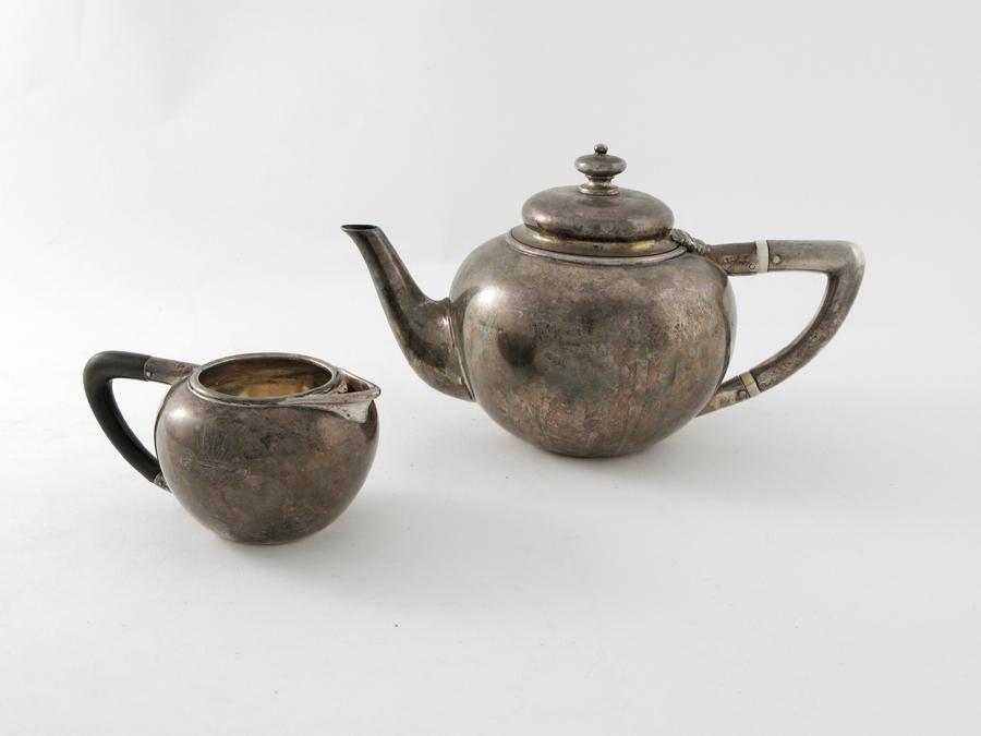 A small Victorian teapot, of plain globular form with an angular handle and button knop finial, initialled, by C.F. Hancocks & Co, London 1889, 12oz.