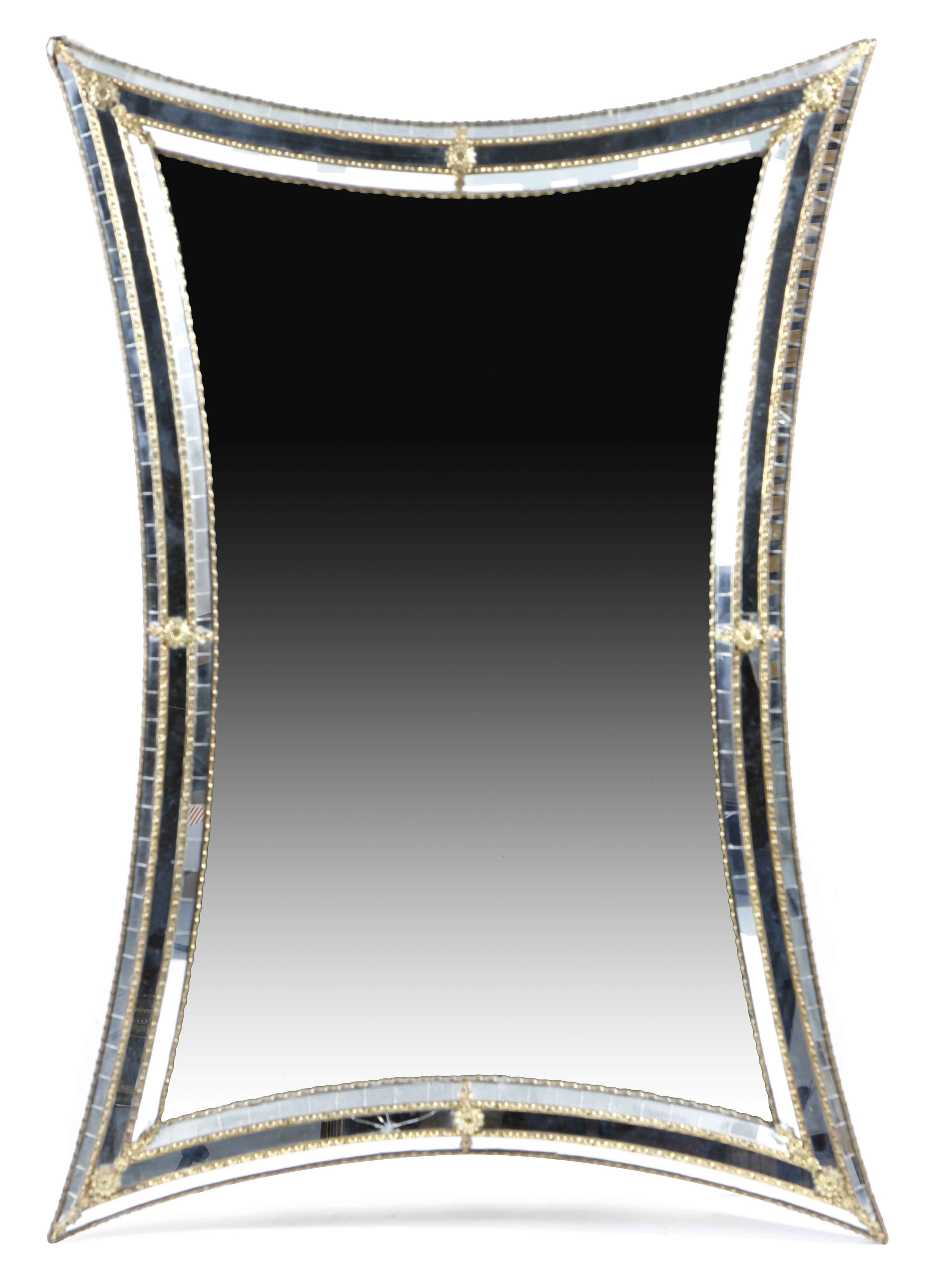 An Italian Venetian wall mirror, of rectangular concave form, with gilt brass mounts and sectional marginal plates, mid-20th century, 101.5 x 70.5cm.