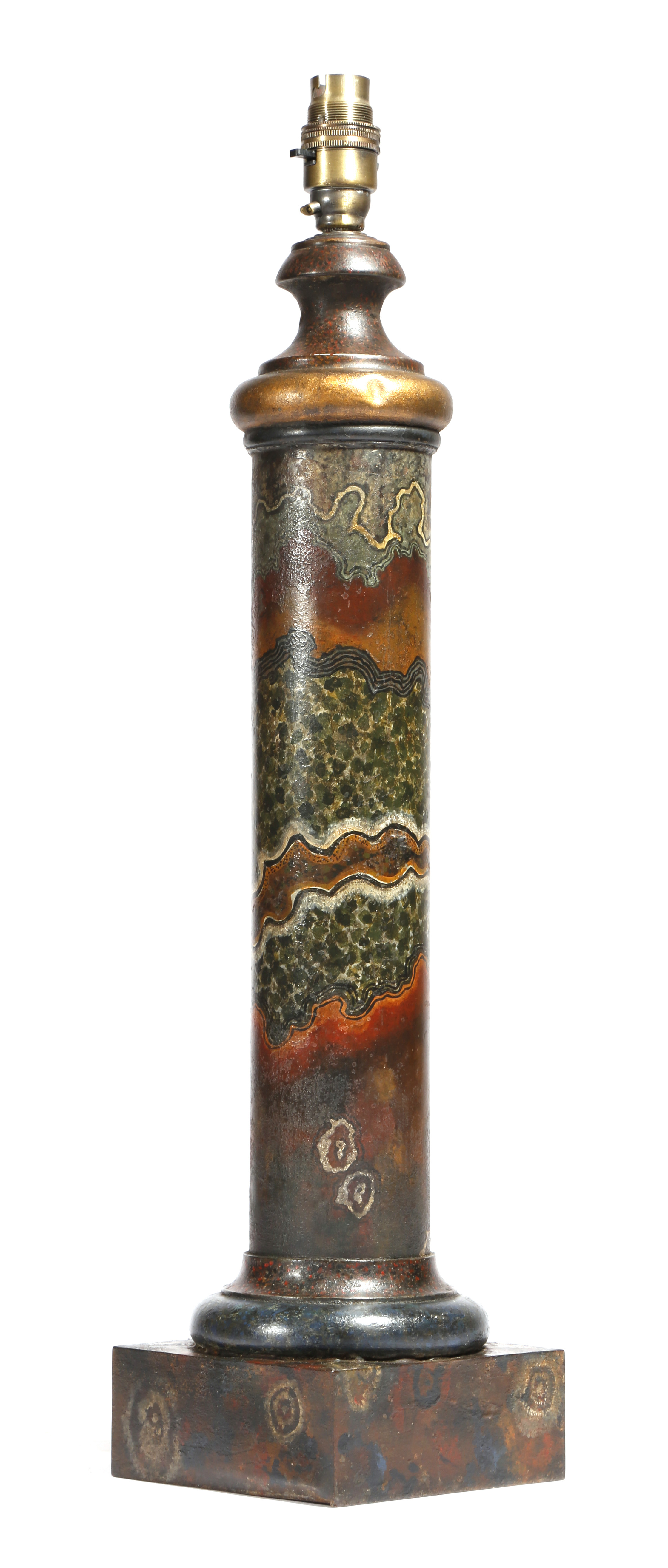 A late 19th century French tole peinte table lamp, with simulated marble decoration, 56.2cm high.