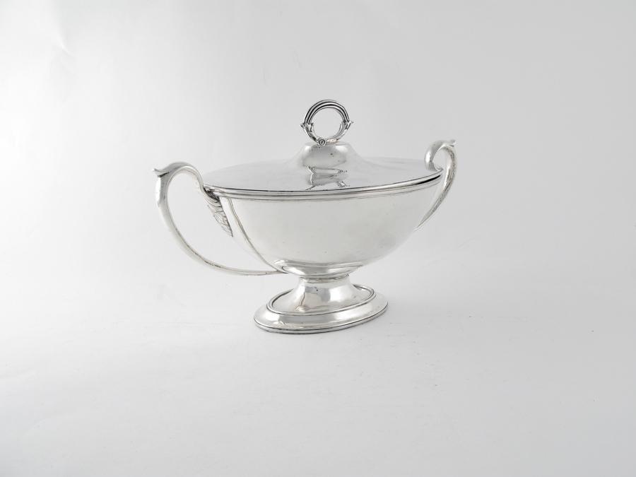 A George III boat-shaped tureen and cover, of intermediate size with twin loop handles and an oval foot, the cover with a reeded ring handle, by George Smith & Thomas Hayter, London 1794, 12.3in (31.2) wide, 30.5oz.