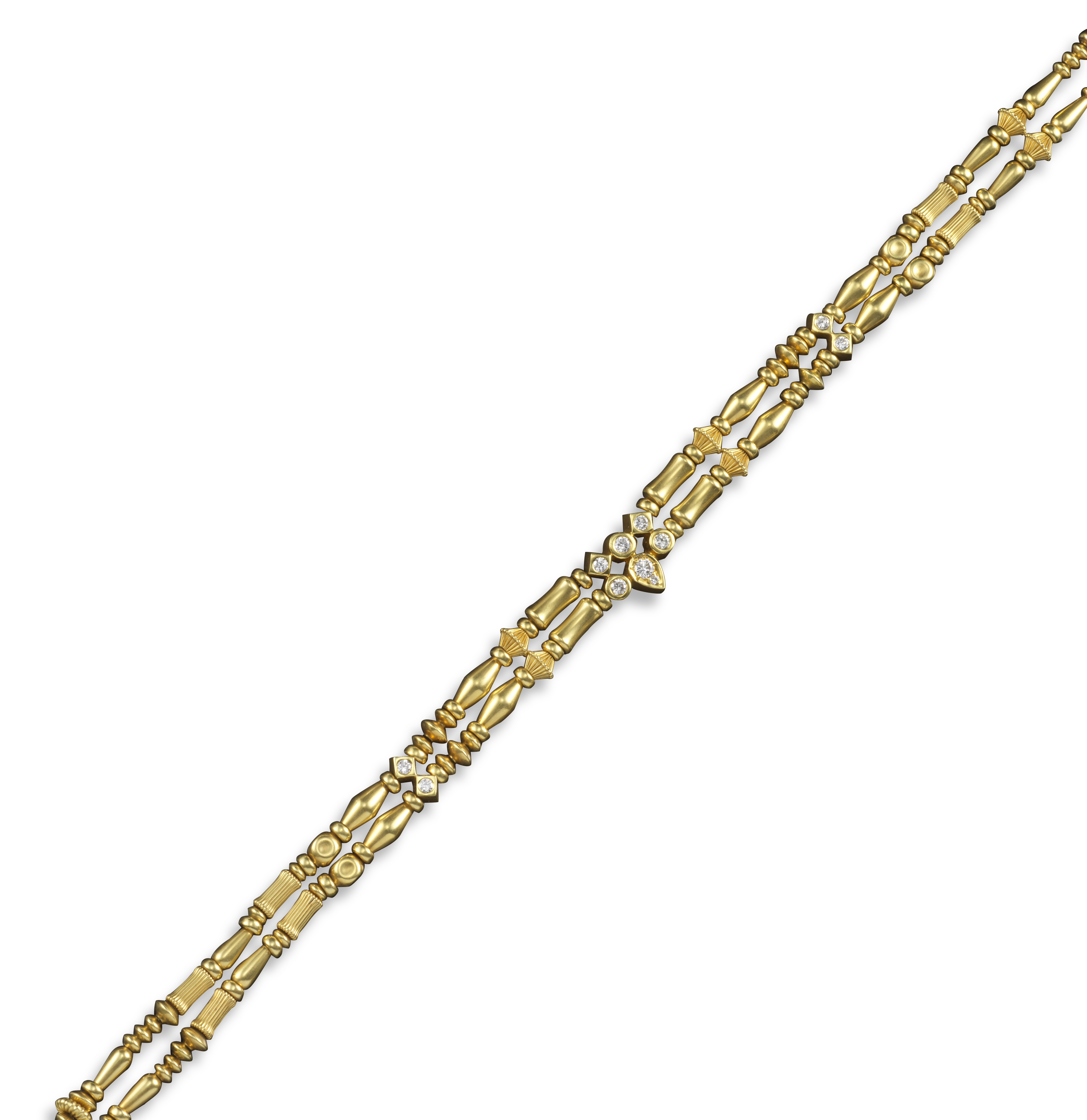 A diamond-set fancy-link gold necklace, set with graduated circular-cut diamonds, stamped SG 18k, 39cm long, 50g