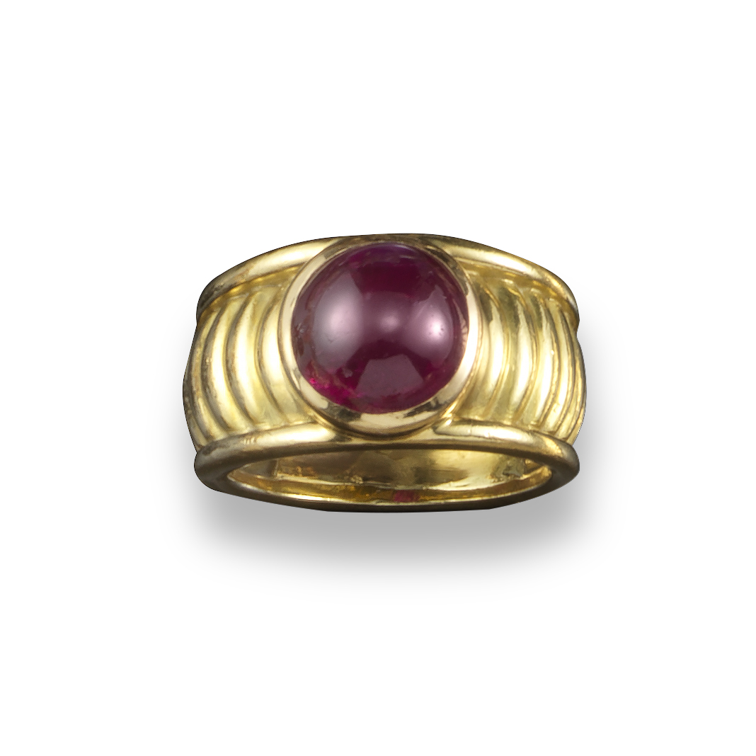 A cabochon ruby solitaire ring