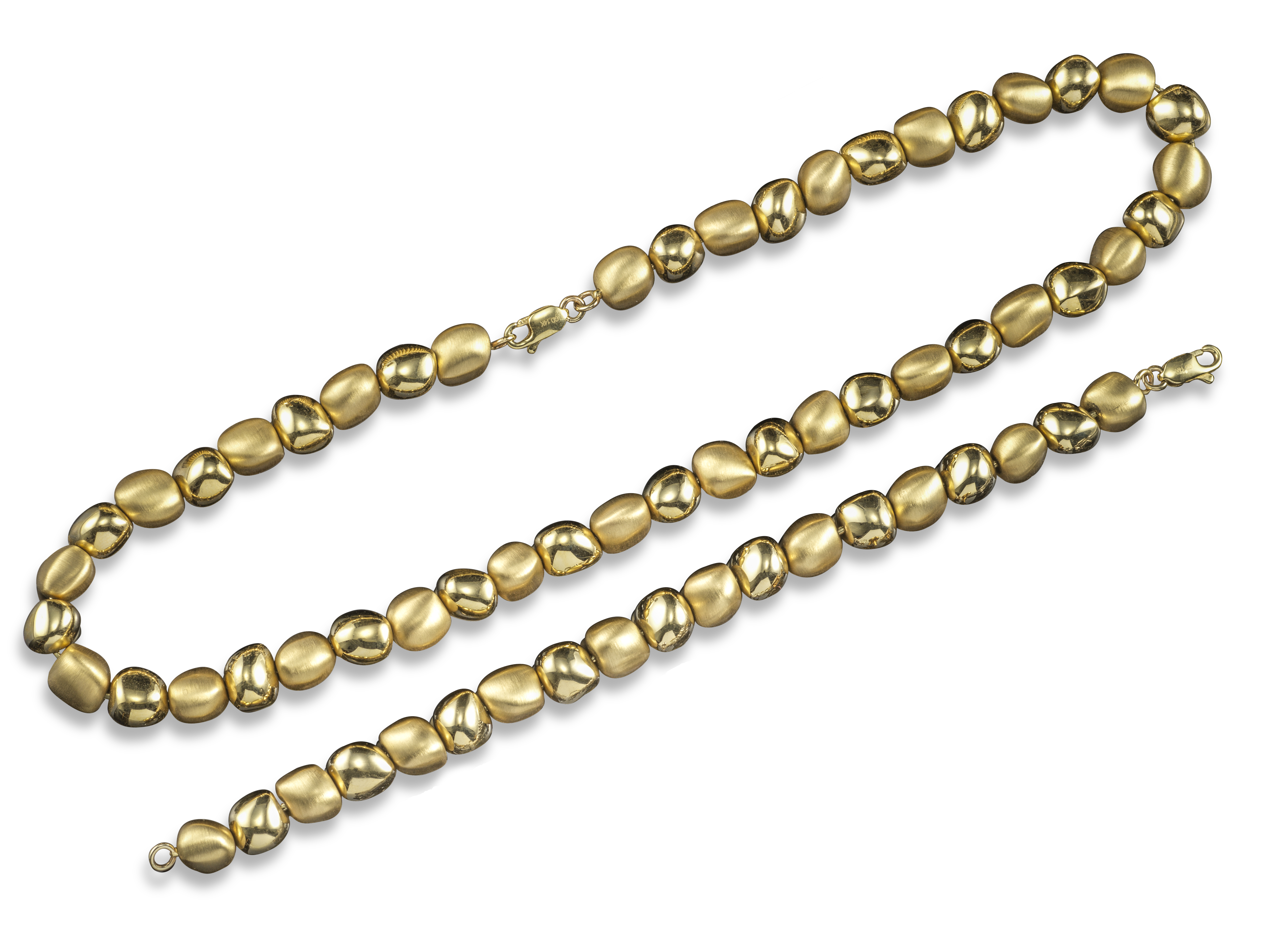 A fancy-link gold necklace, formed from alternately textured and smooth asymmetrical links in yellow gold, 42cm long, with a matching gold bracelet, 19.5cm long, 68g total