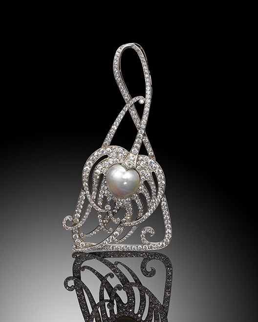 An Art Nouveau natural pearl and diamond pendant by Tiffany & Co