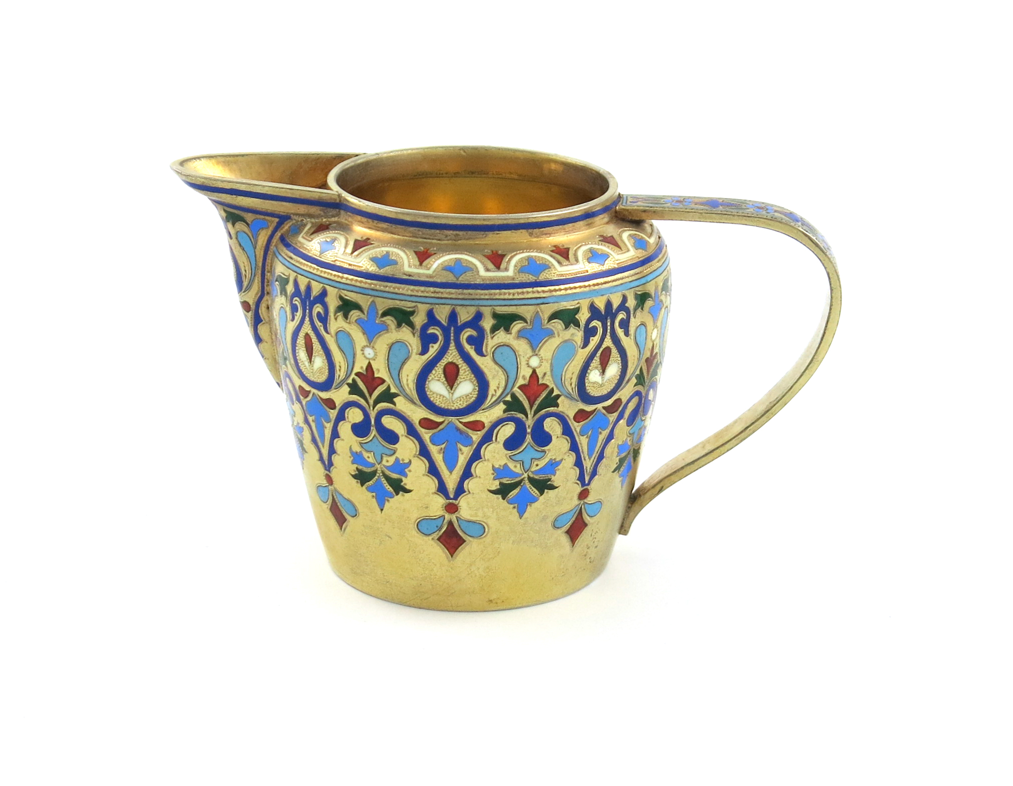A 19th century Russian silver-gilt and enamel cream jug