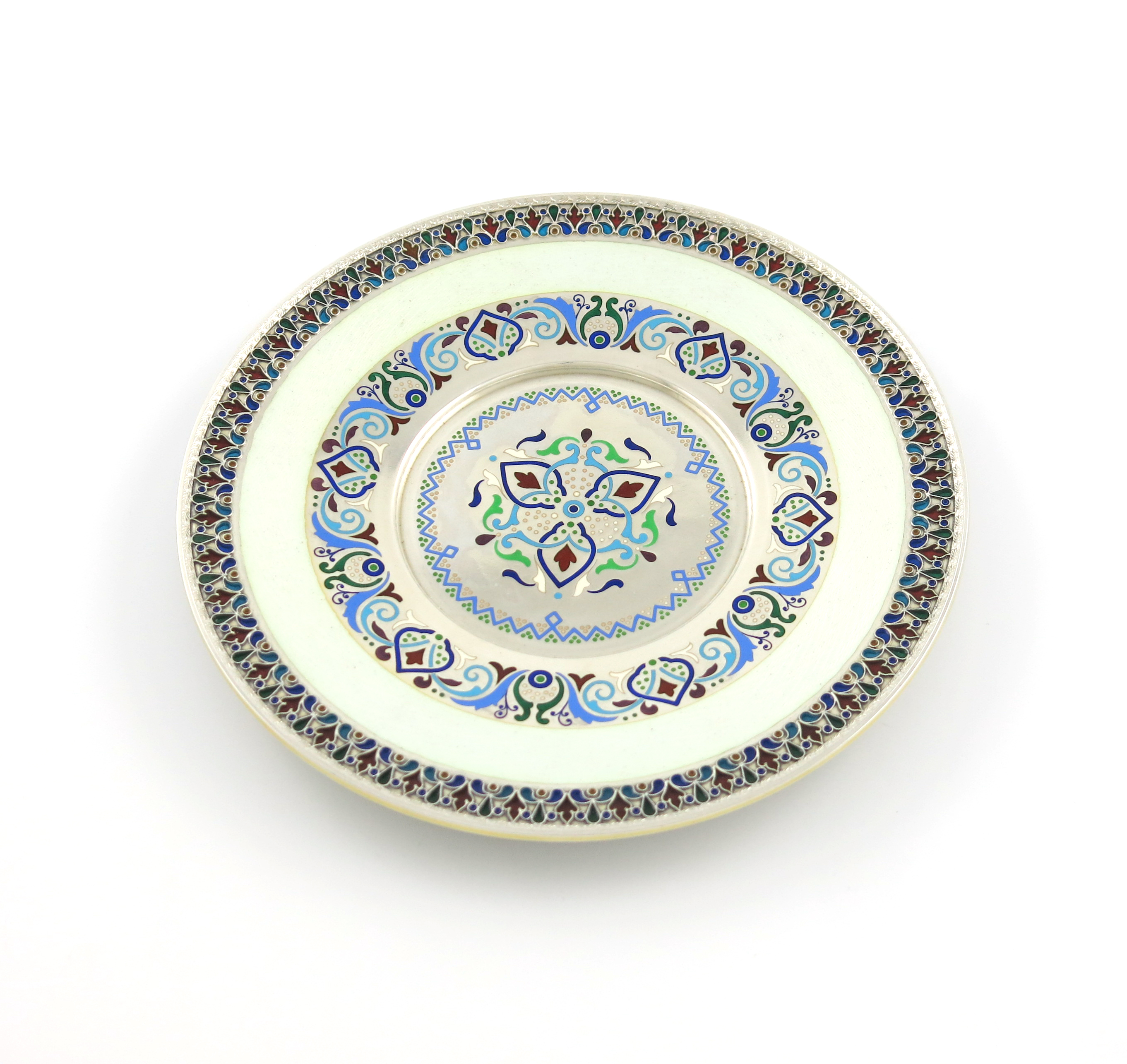 A late 19th century Russian silver and enamel plate