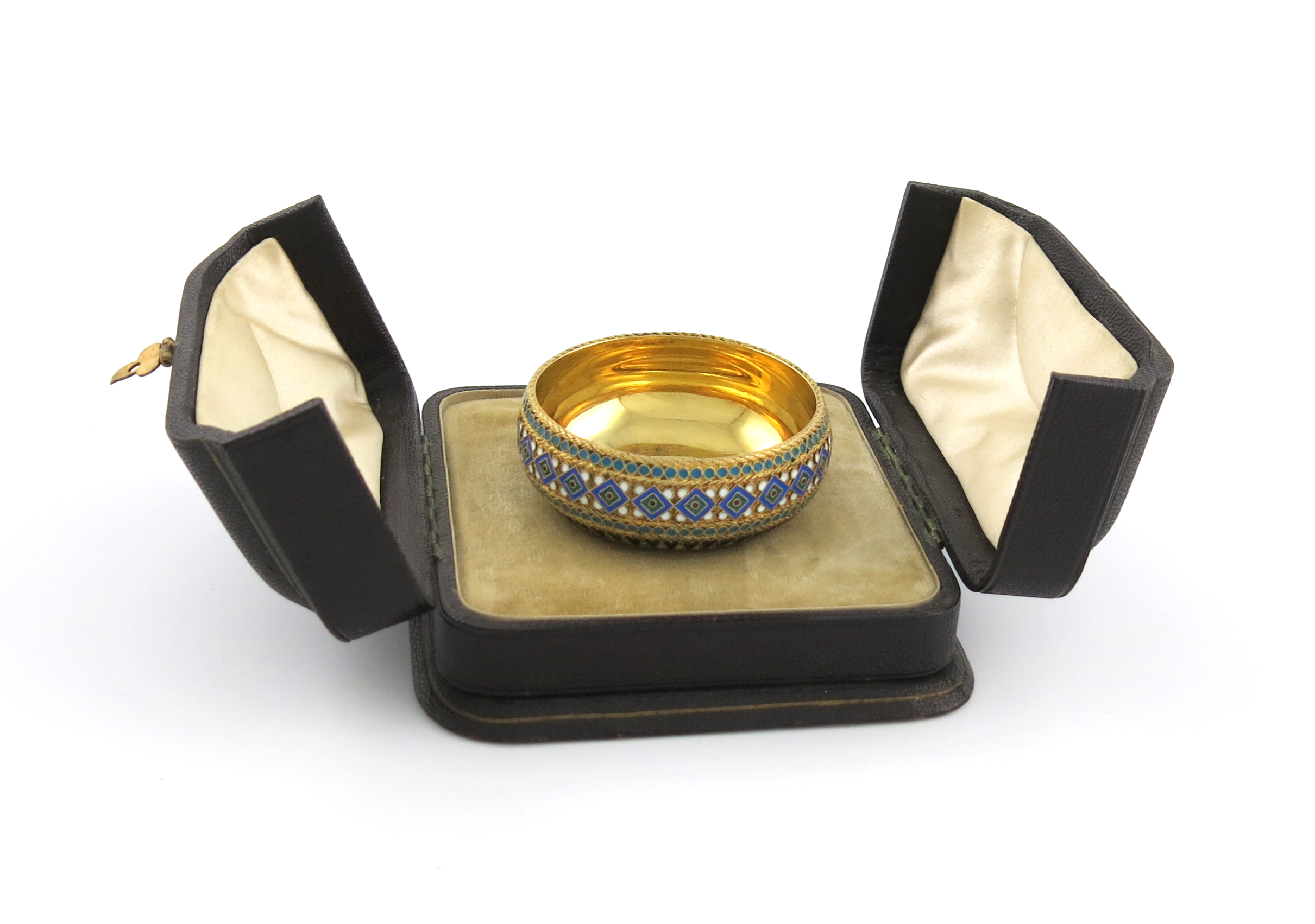 A late 19th century Russian silver-gilt and enamel salt cellar