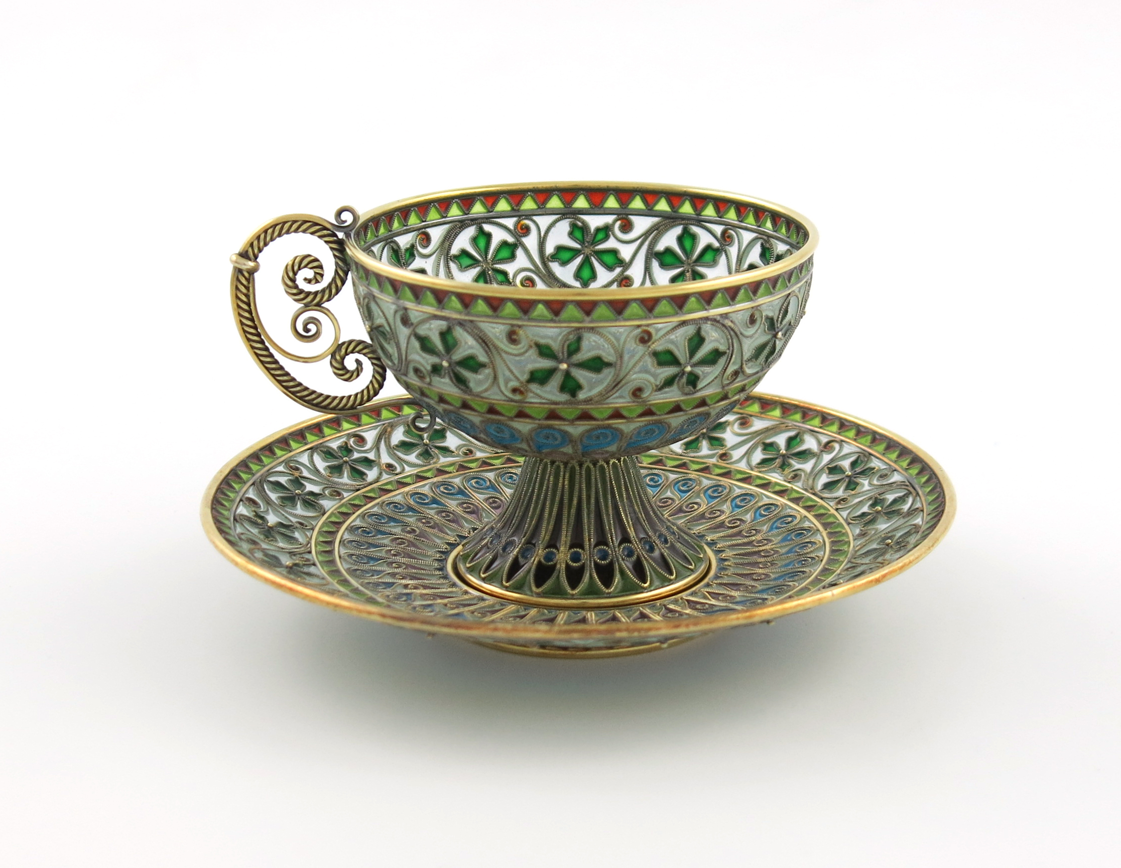 A Norwegian silver-gilt and plique à jour cup and saucer