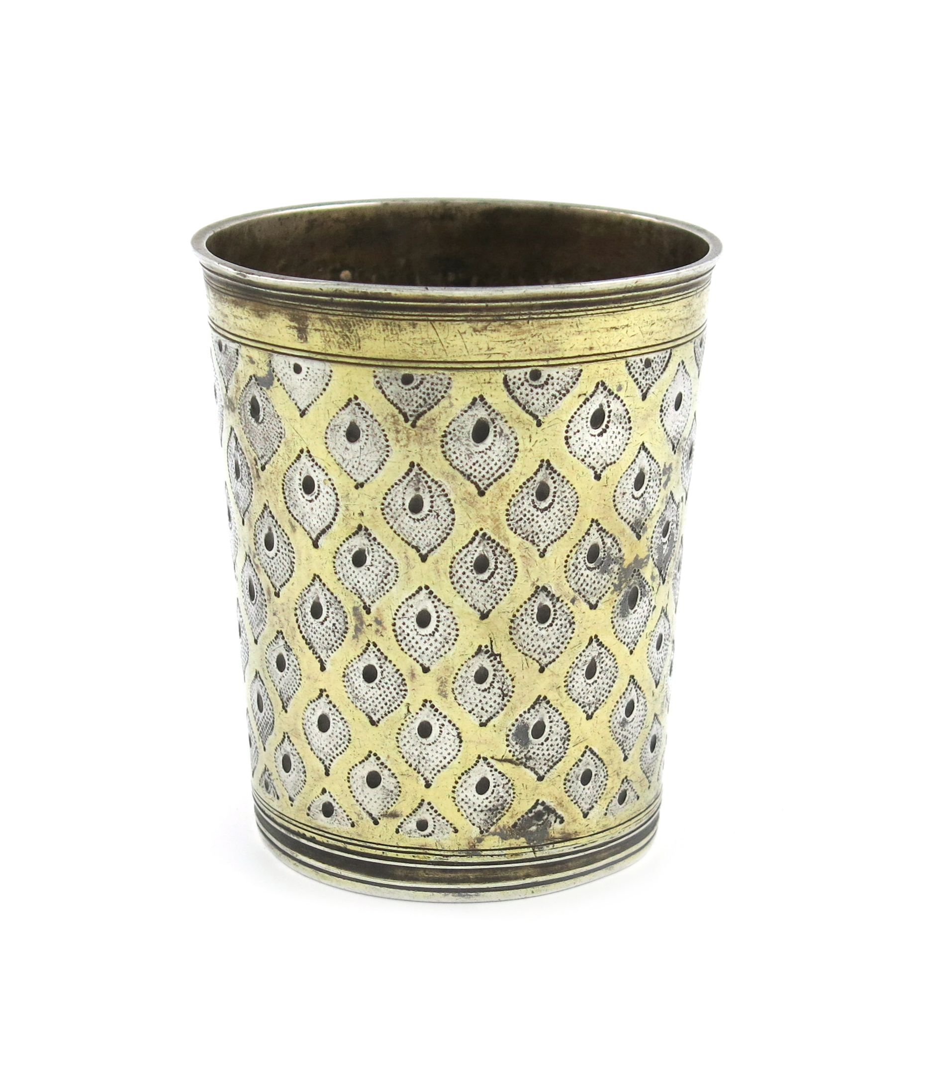 tapering circular form, with a leaf-shaped pattern decoration, height 9cm, approx. weight 4.4oz.
