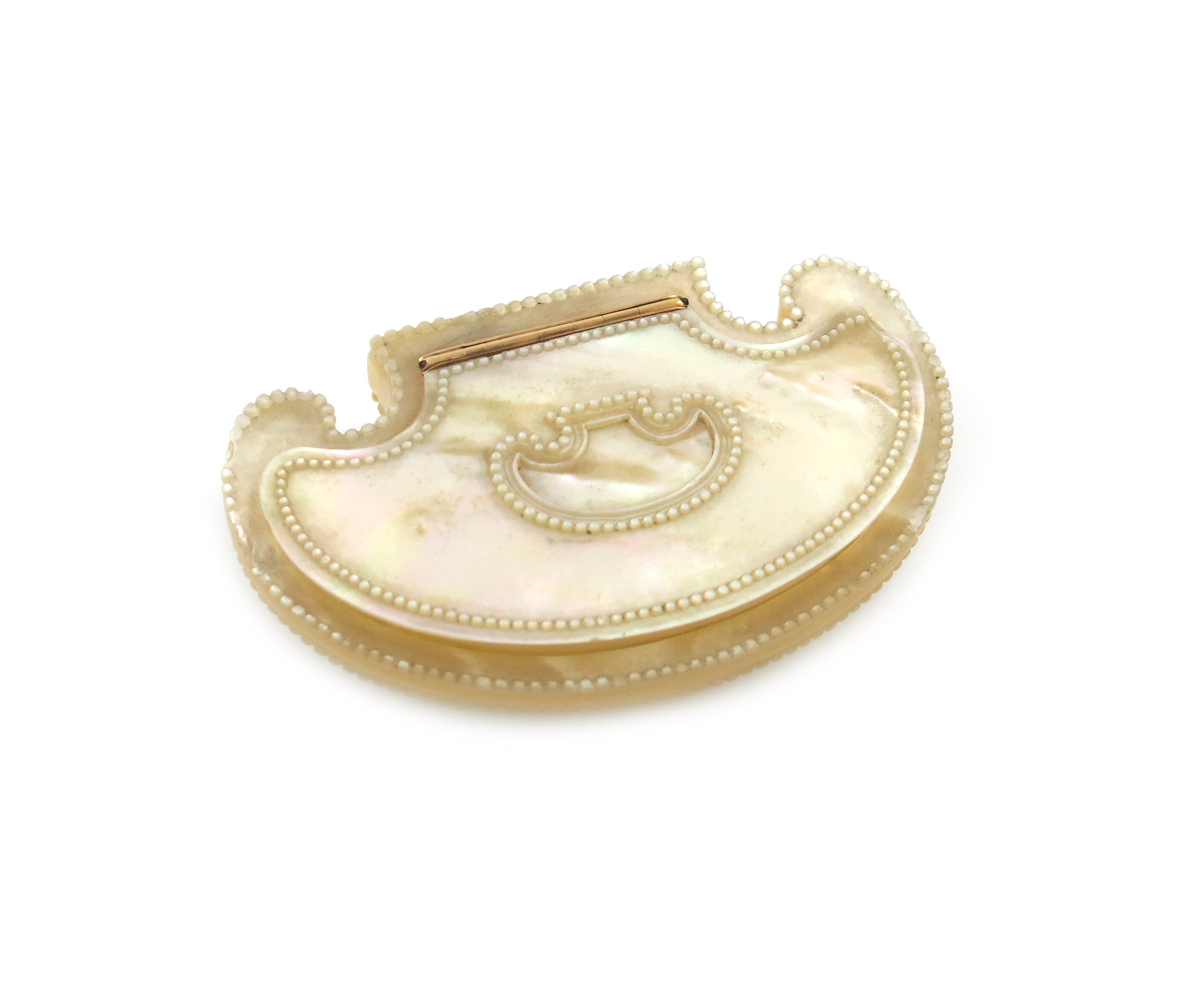 An early 19th century French gold-mounted mother-of-pearl snuff box