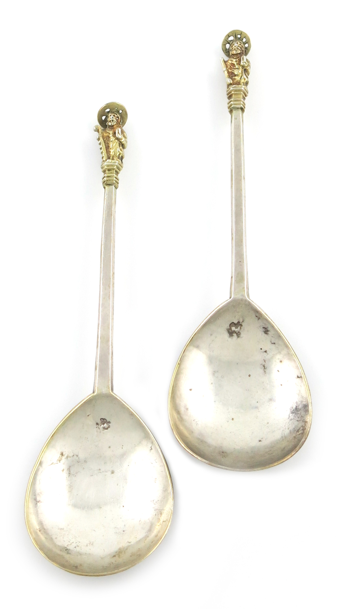 A pair of Elizabeth I West Country silver Apostle spoons, St. Simon Zelotes and James The Less,