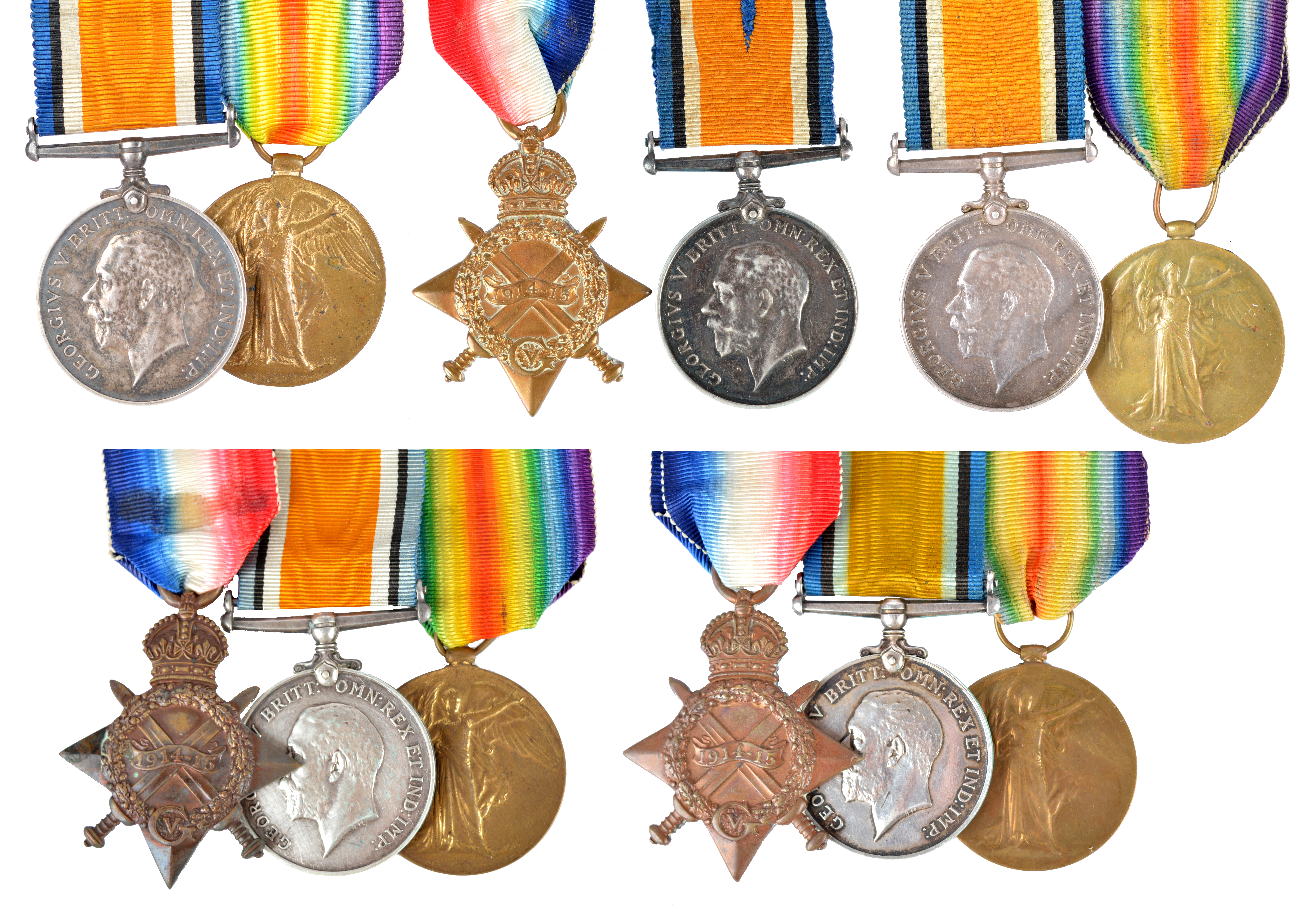 A collection of Great War campaign awards, comprising: a 1914-15 Star to an H.M.S. Hampshire Casualty Harry Noel (K. 18283, H. NOEL. STO. 1. R.N.); a pair: British War Medal 1914-20 and Victory Medal (115763 GNR. H.J. MAWHOOD. R.A.); another pair (1628 CPL. S. ELAND. R.A.M.C.); two 1914-15 Stars (10578 PTE. A.F. HART. DORSET:R. and SS-17177 PTE. W.J. GUNNING. A.S.C.); three British War Medals 1914-20 (CAPTAIN P.R. STRONG; 139469 E. BROWN. LG. BTN. R.N. and 59183 PTE. W. R. BASS. LEIC. R.); and two Victory Medals (PAYR. LT. CR. D. H. PASMORE. R.N. and J. 37882 C.H. EDSALL. BOY. 1 R.N.).