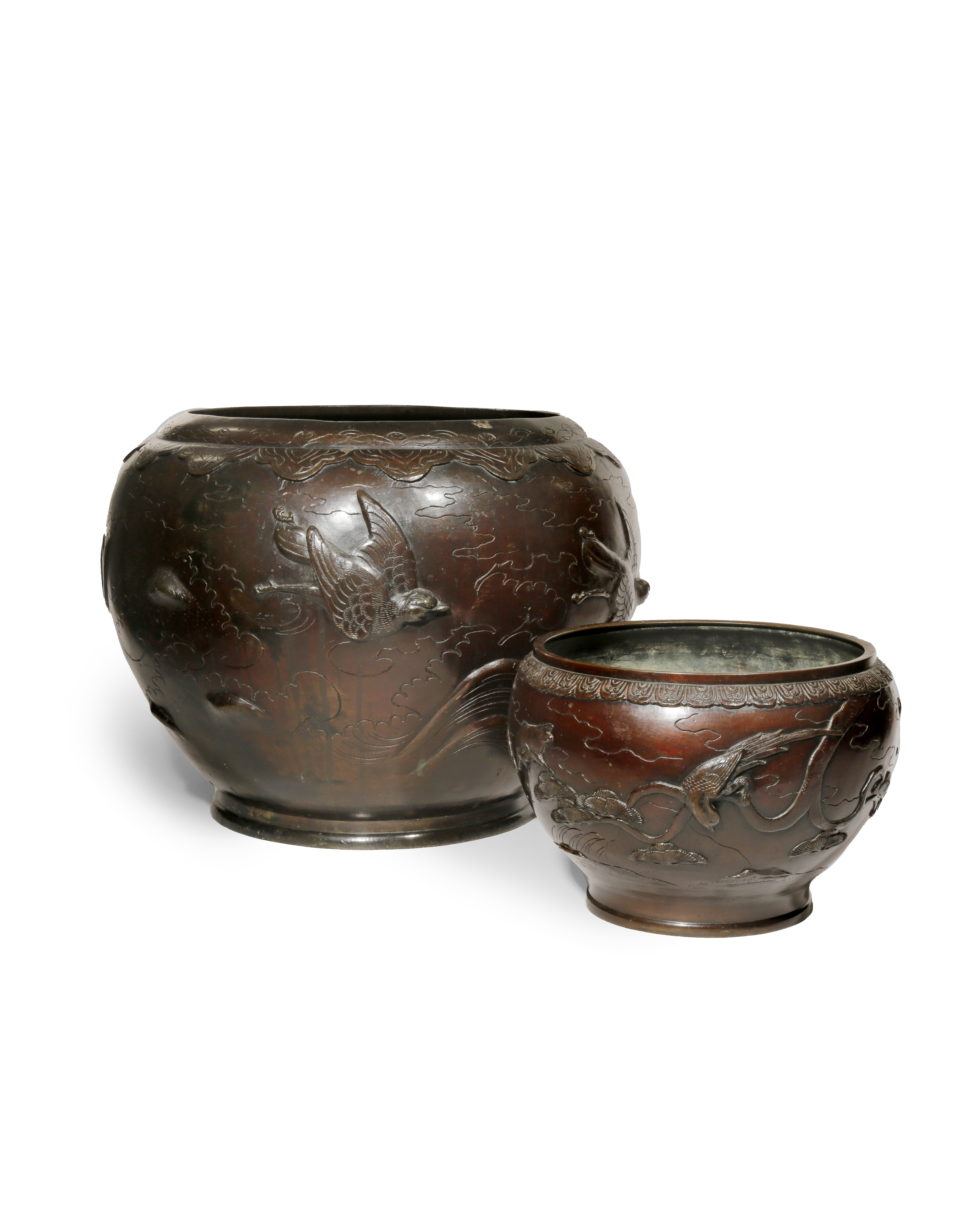 TWO JAPANESE BRONZE JARDINIERES