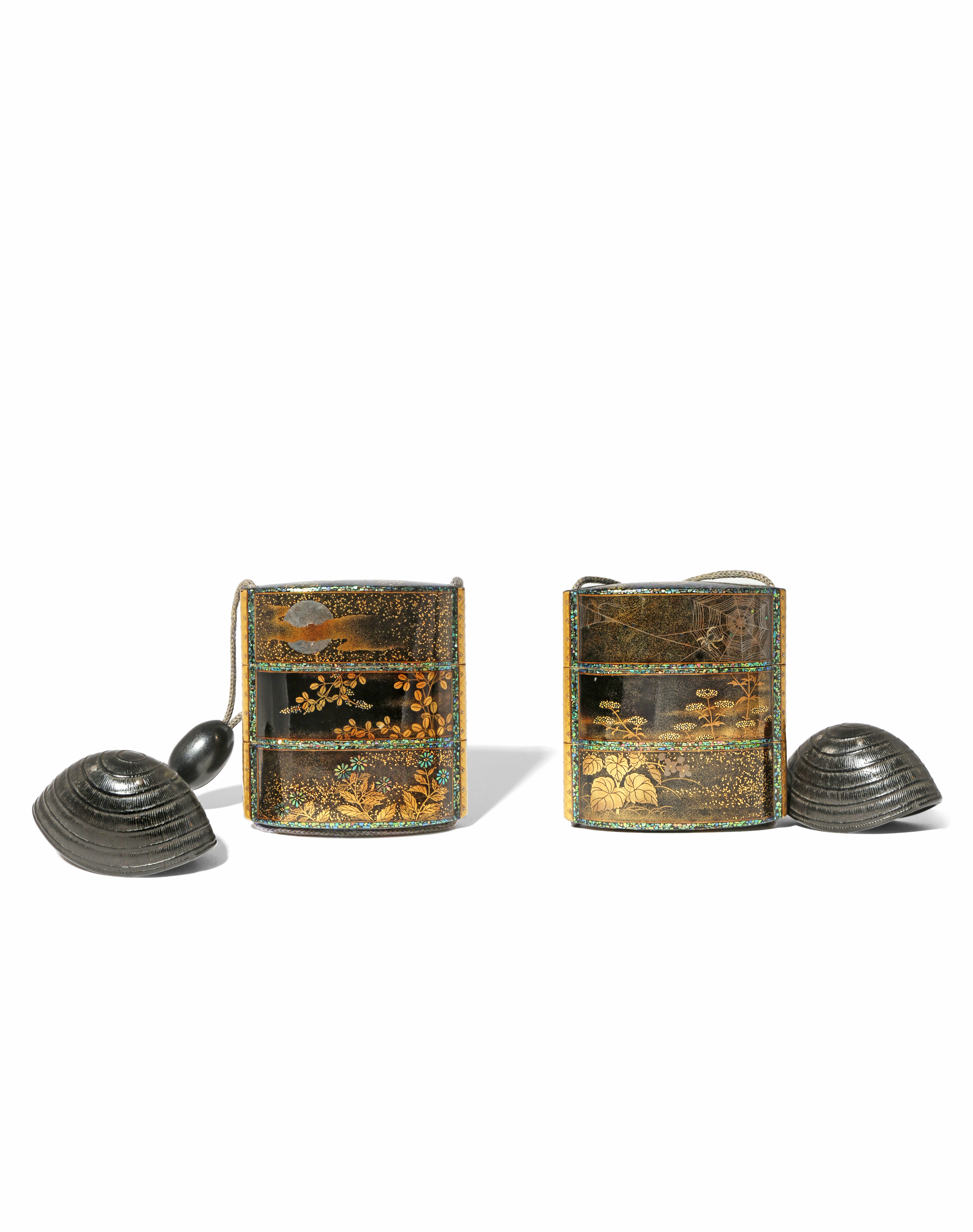 A JAPANESE SOMADA SCHOOL TWO-CASE LACQUER INRO EDO 1615-1868 The body decorated with typical...