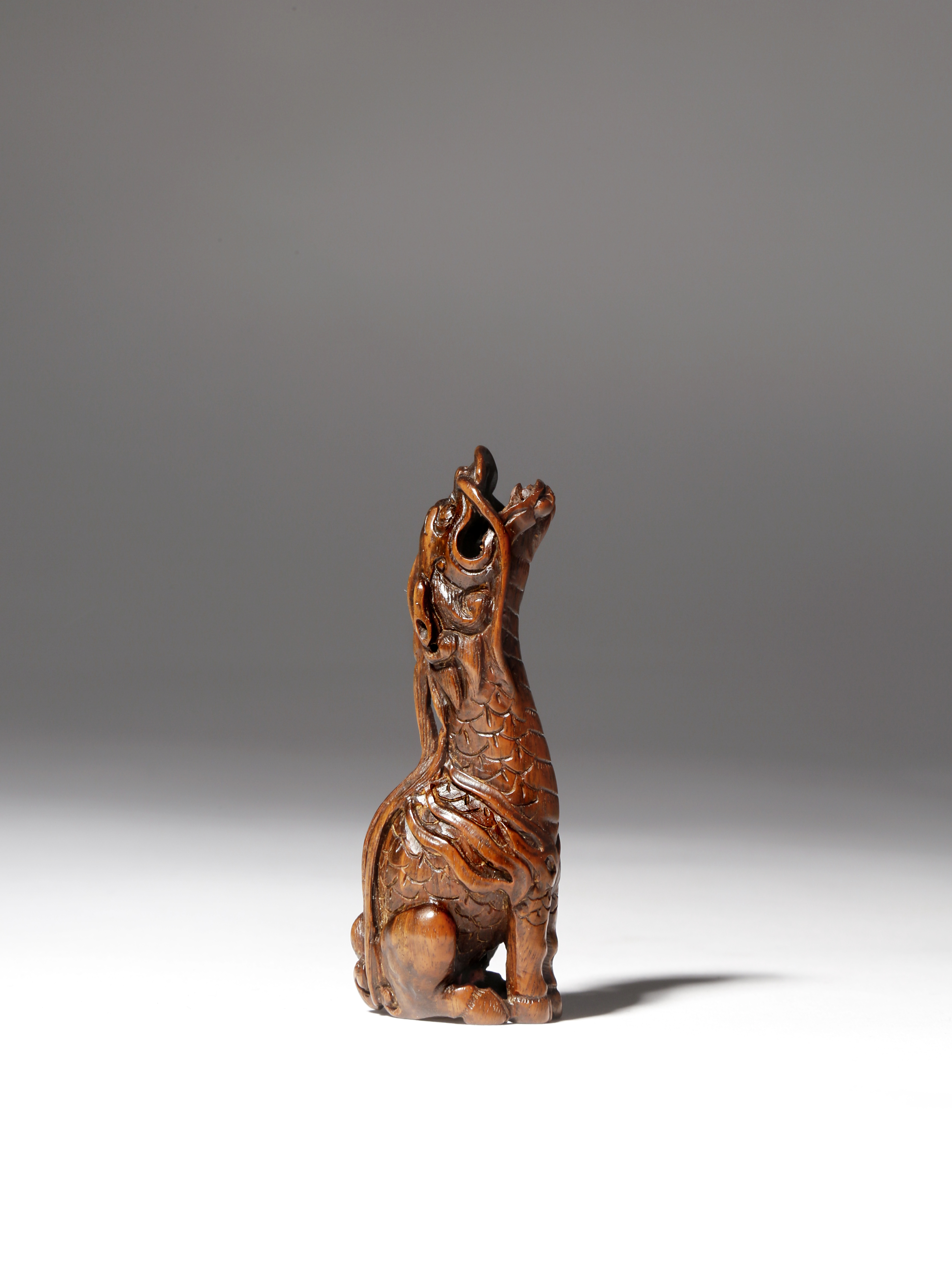 A JAPANESE WOOD NETSUKE OF A KIRIN