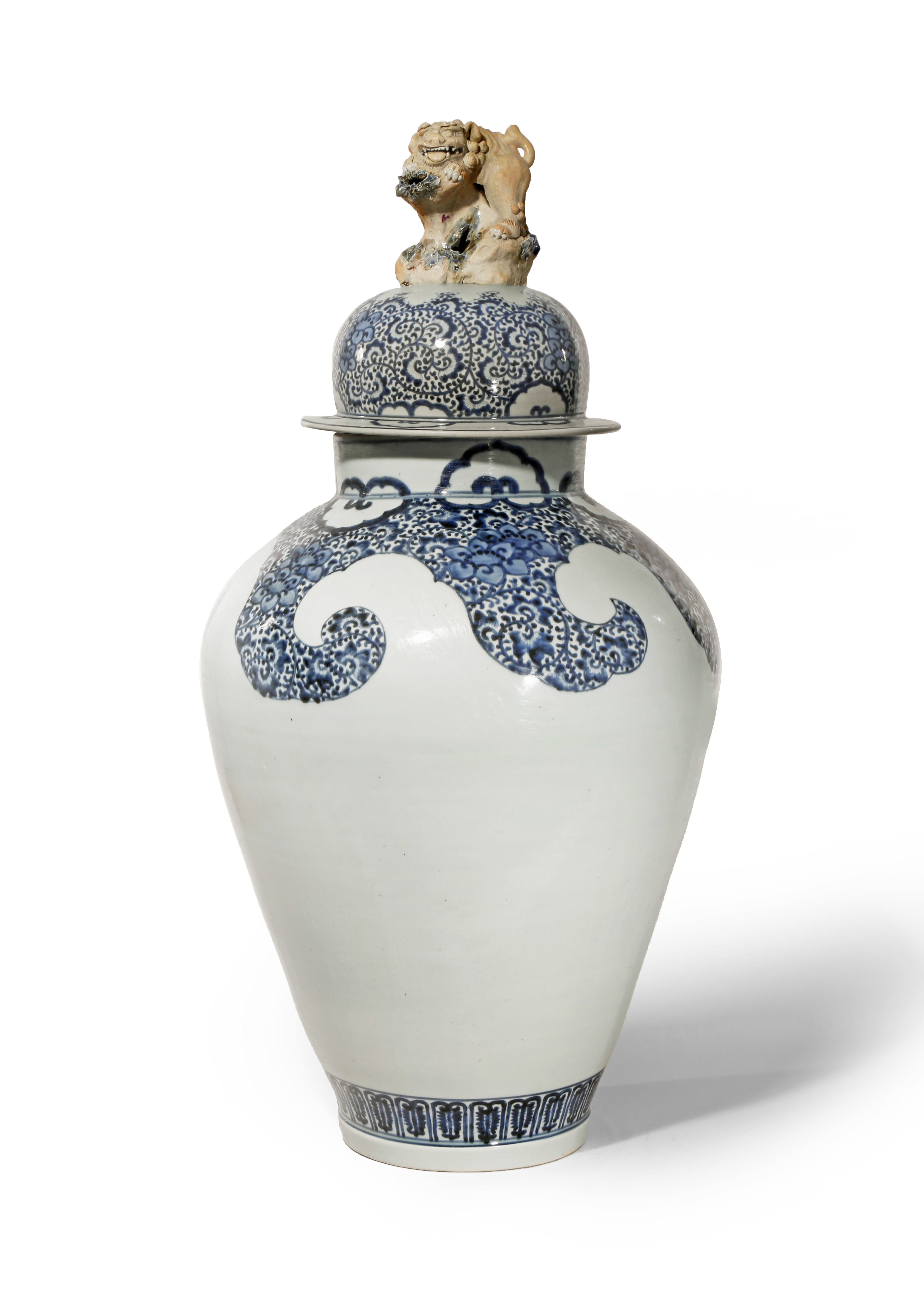 A LARGE JAPANESE ARITA BLUE AND WHITE BALUSTER VASE AND COVER LATE 17TH/EARLY 18TH CENTURY The...