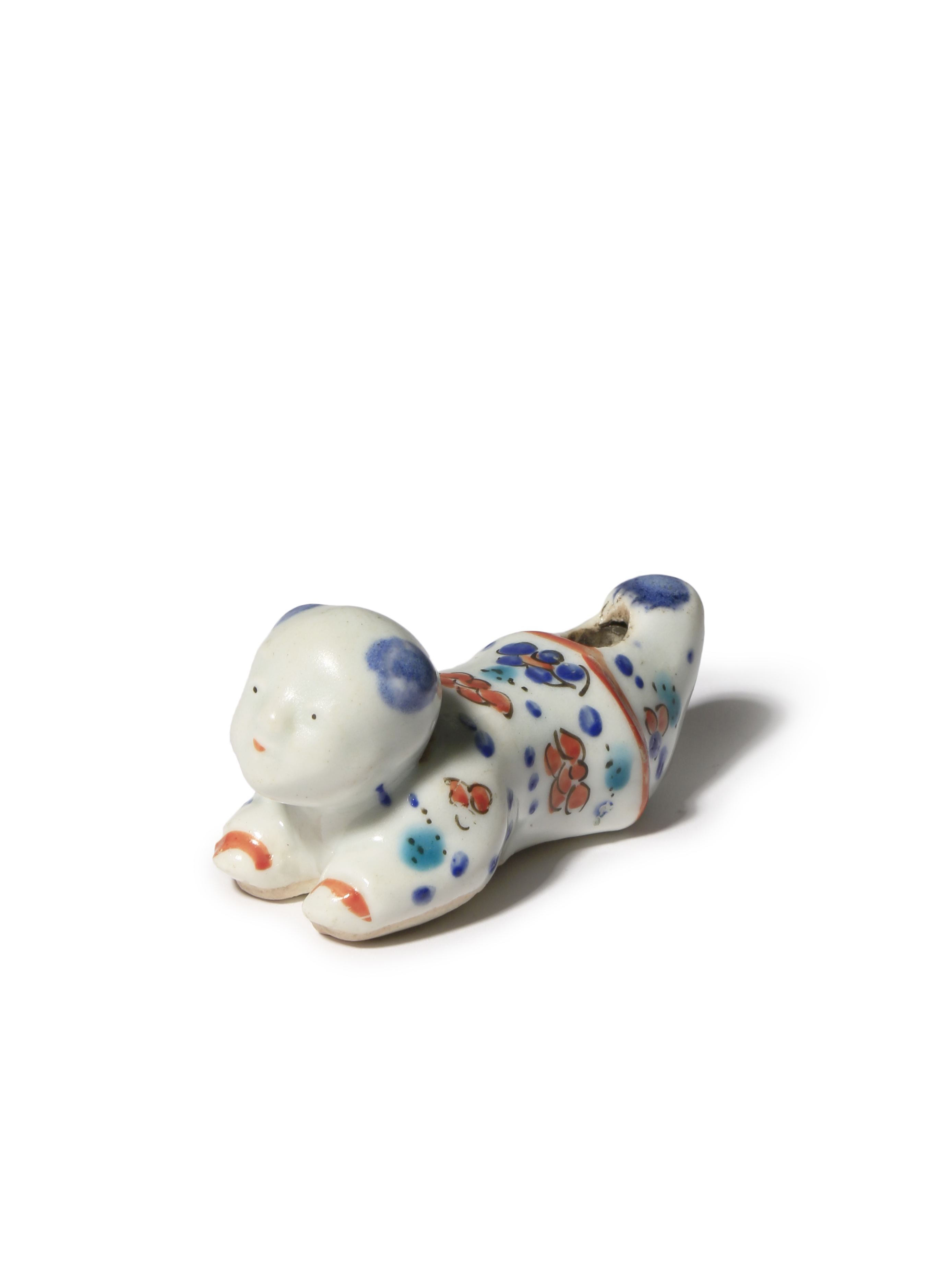 A JAPANESE KAKIEMON-STYLE WHISTLE C.1700 Modelled as a small boy lying on his belly