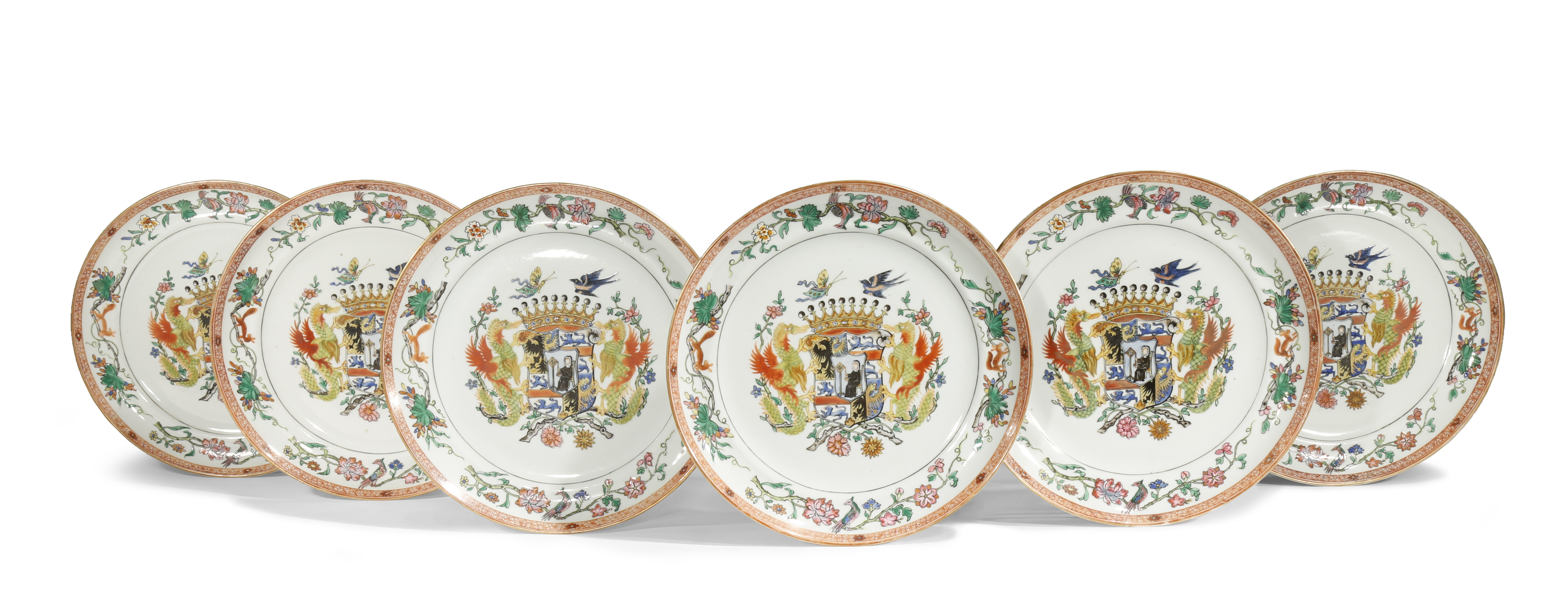 A SET OF SIX CHINESE ARMORIAL PLATES