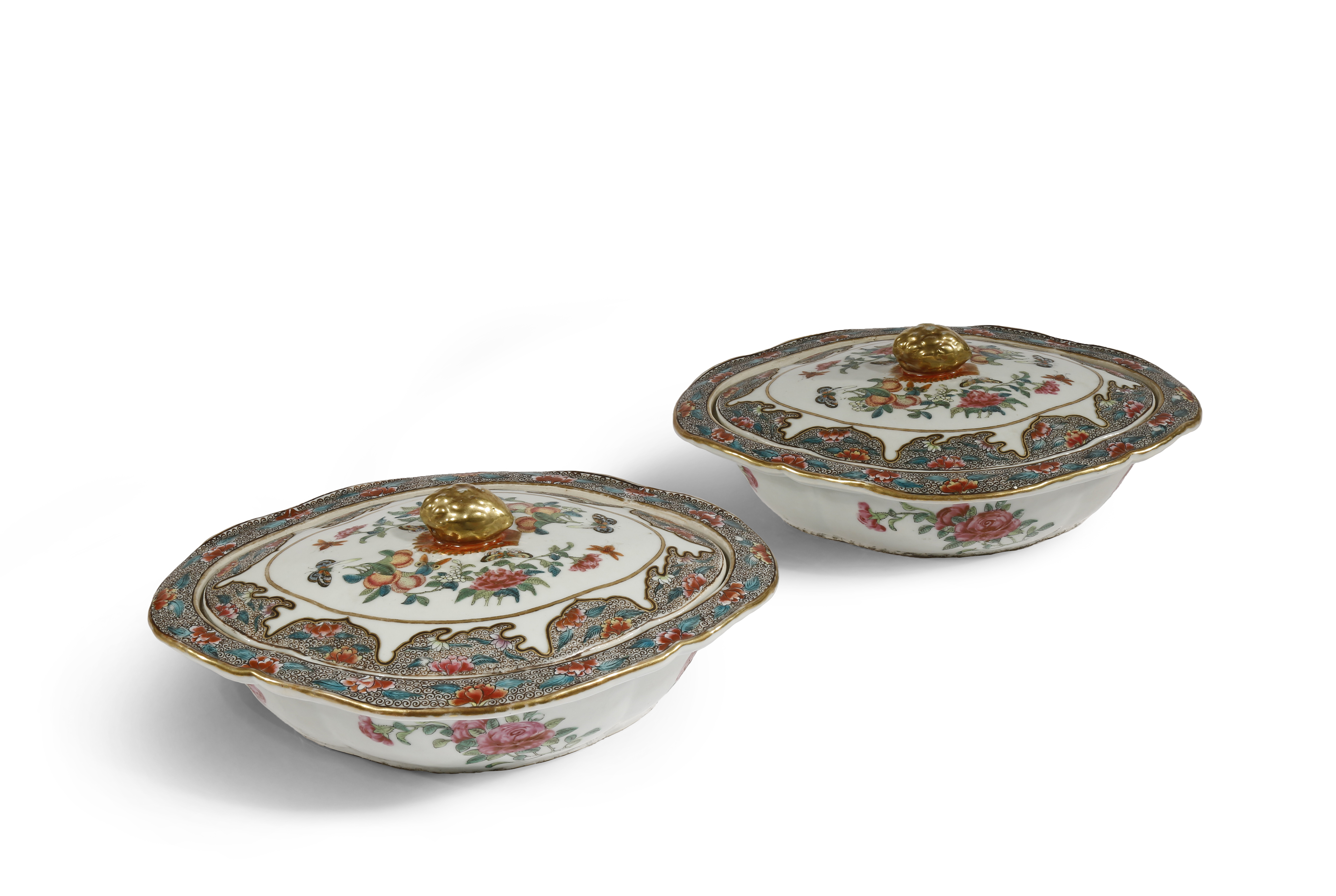 A PAIR OF CHINESE FAMILLE ROSE TUREENS AND COVERS