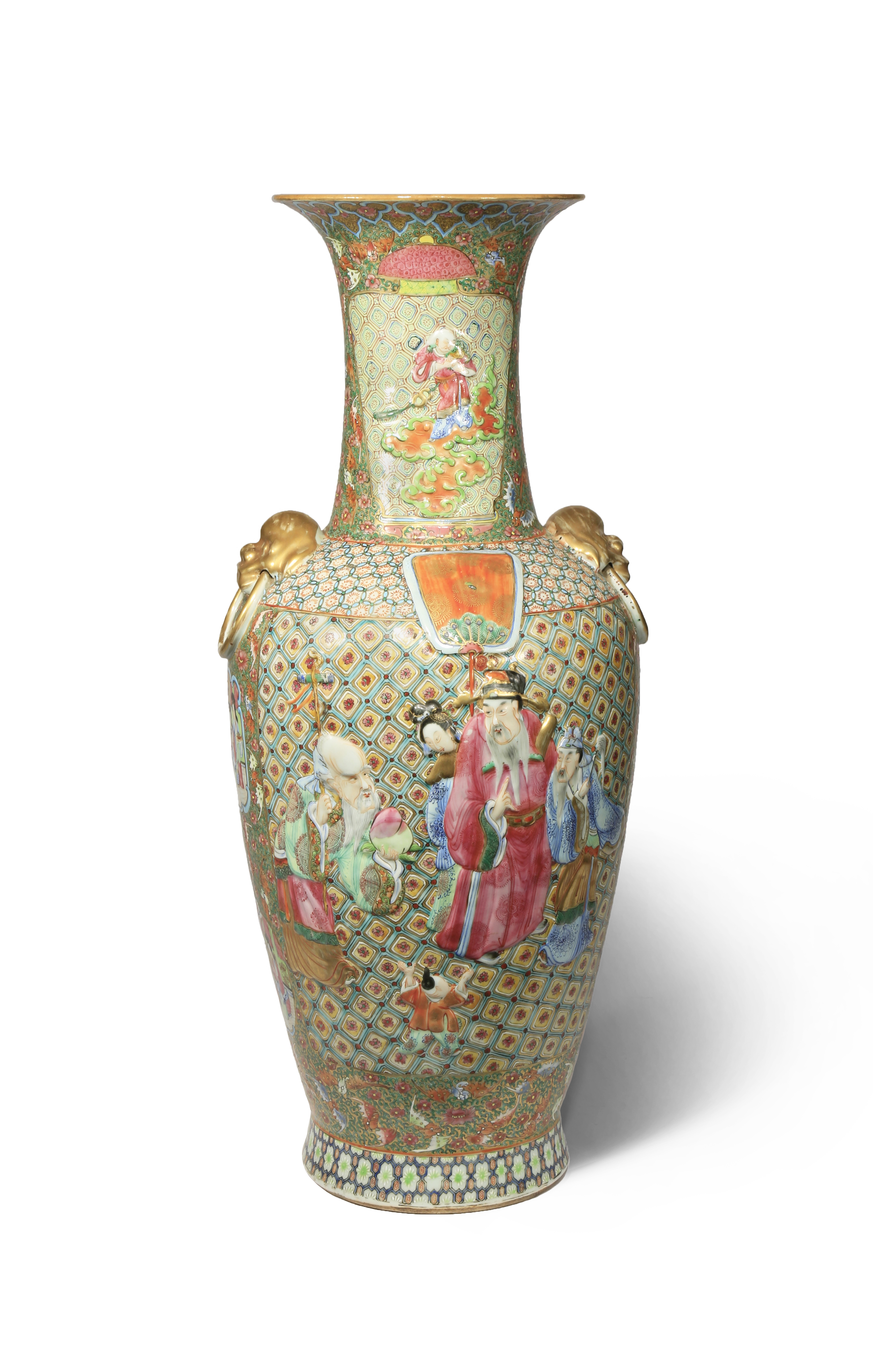 A LARGE CHINESE CANTON FAMILLE ROSE MOULDED 'SANXING' VASE 19TH CENTURY Richly decorated with the...
