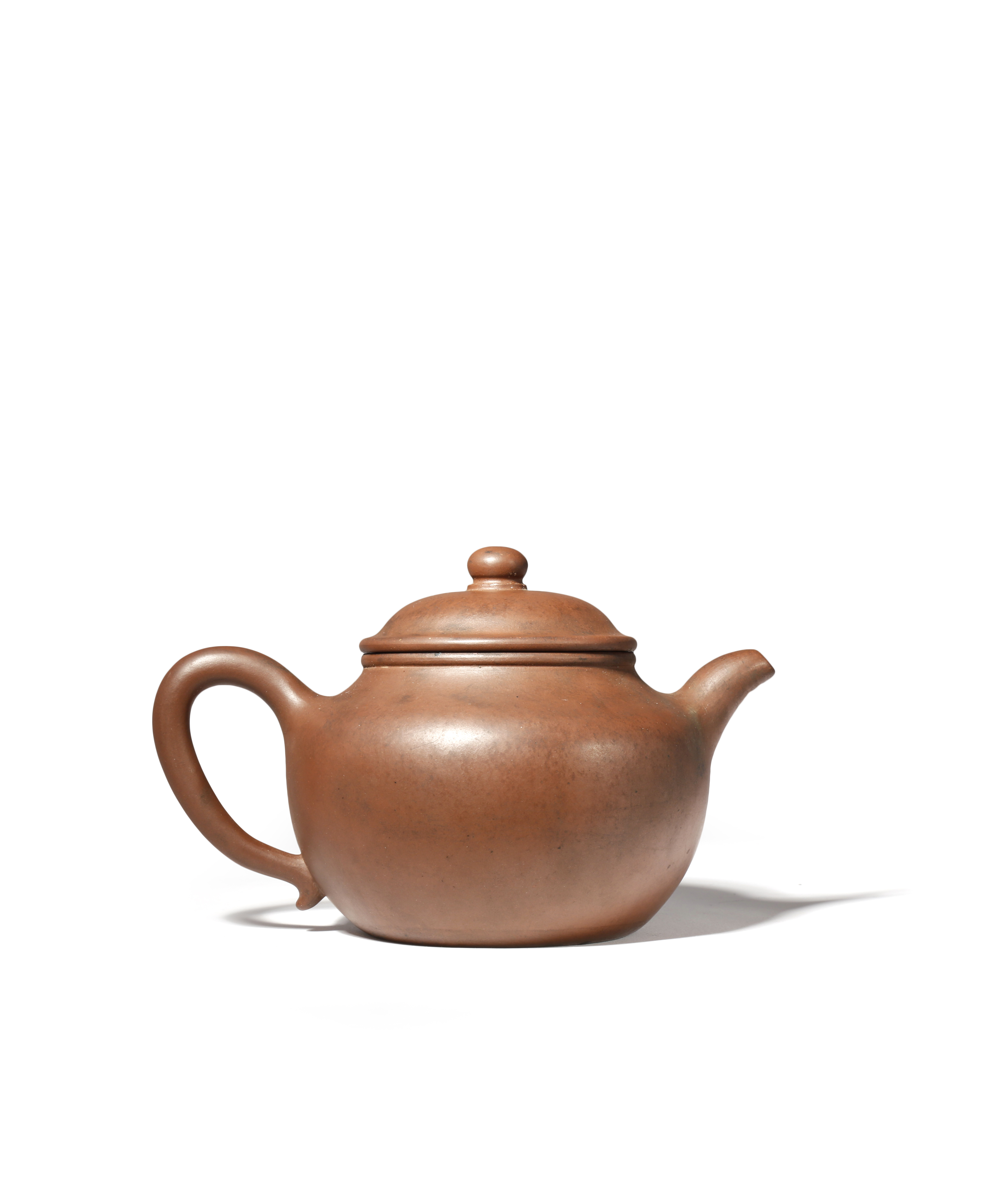 A CHINESE YIXING TEAPOT AND COVER QING DYNASTY The plain body with a loop handle and a short spout