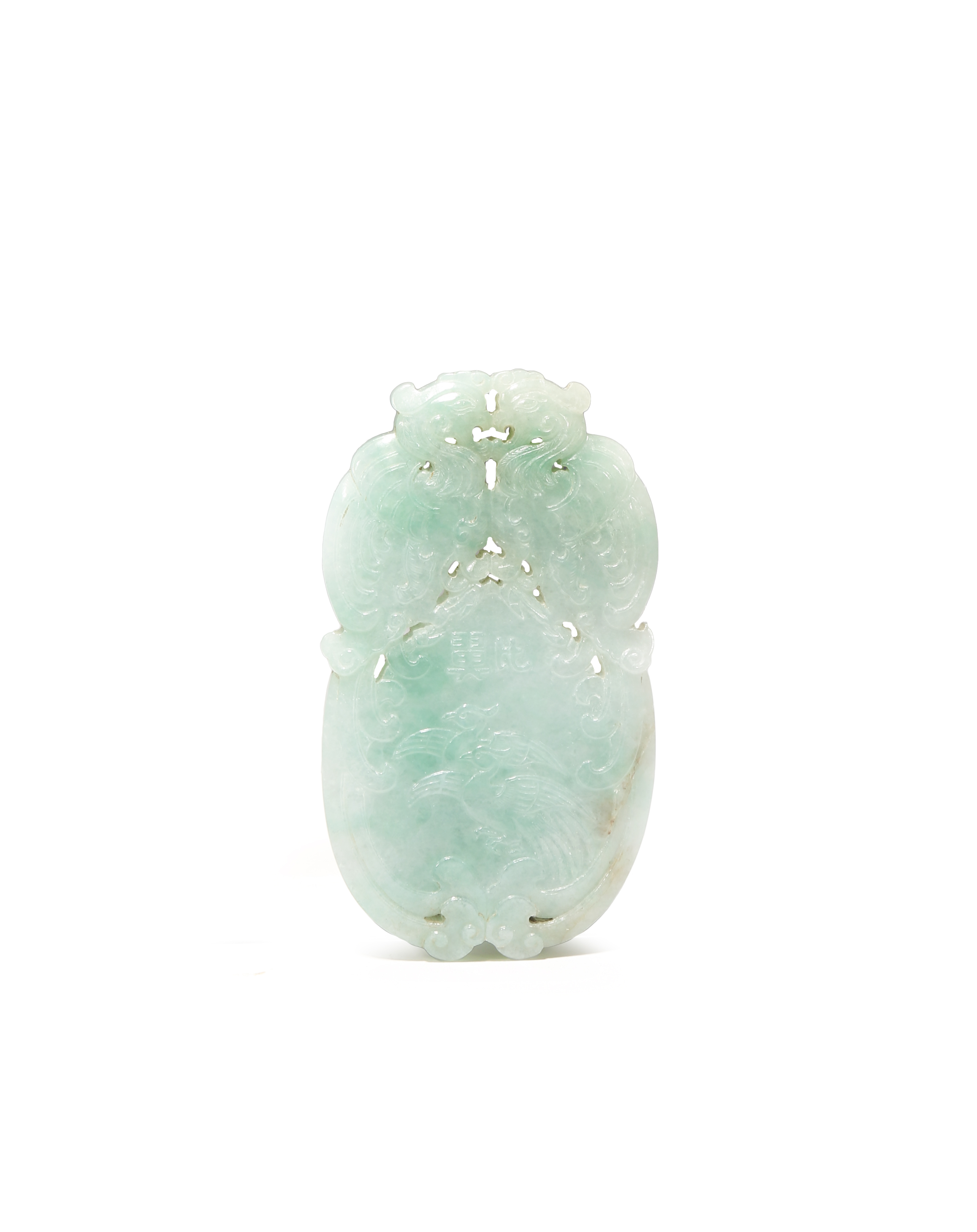 A CHINESE APPLE GREEN JADEITE 'PHOENIX' PLAQUE