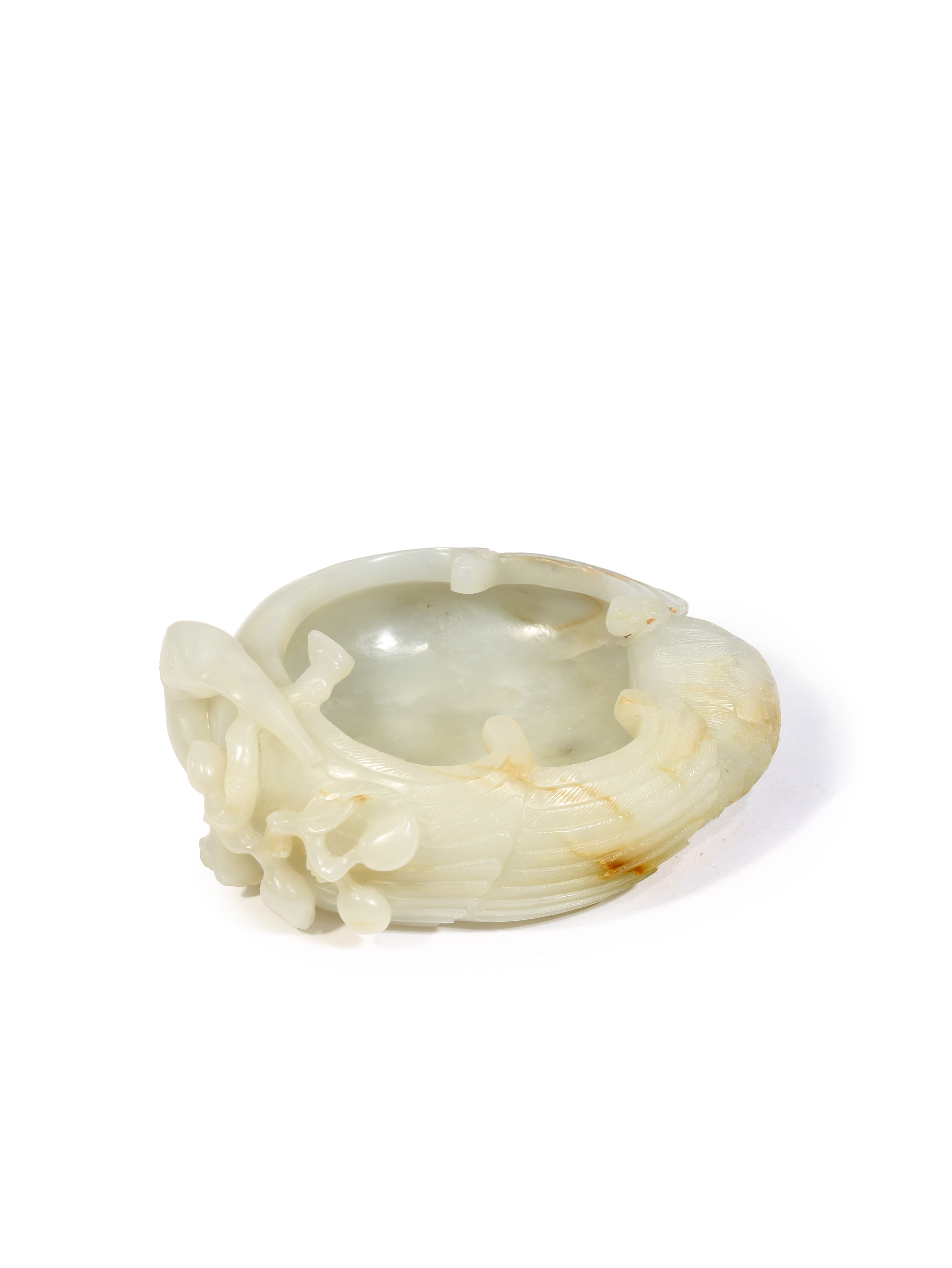 A PALE CELADON JADE 'CRANE' BRUSH WASHER