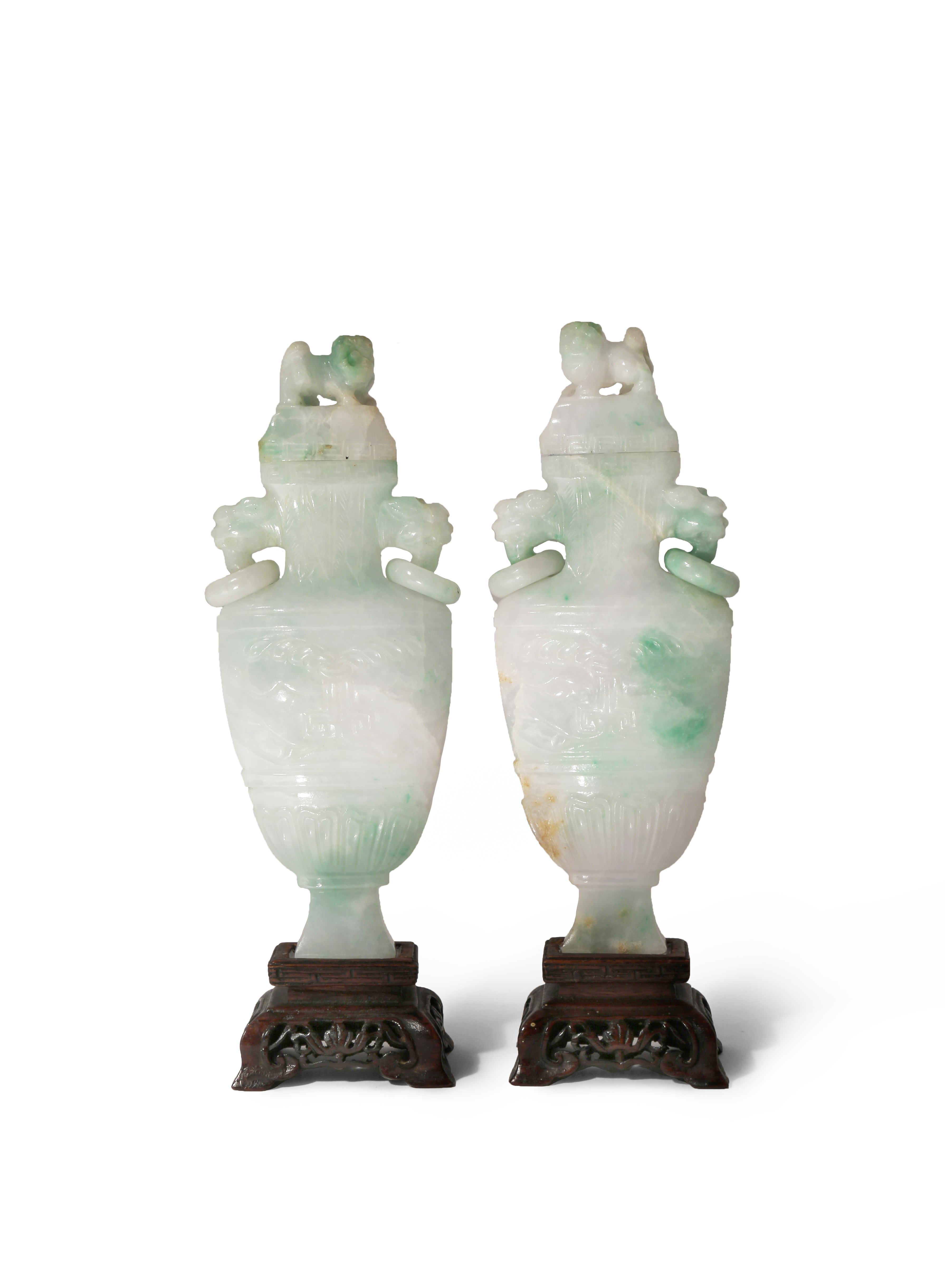 A PAIR OF CHINESE JADEITE VASES AND COVERS